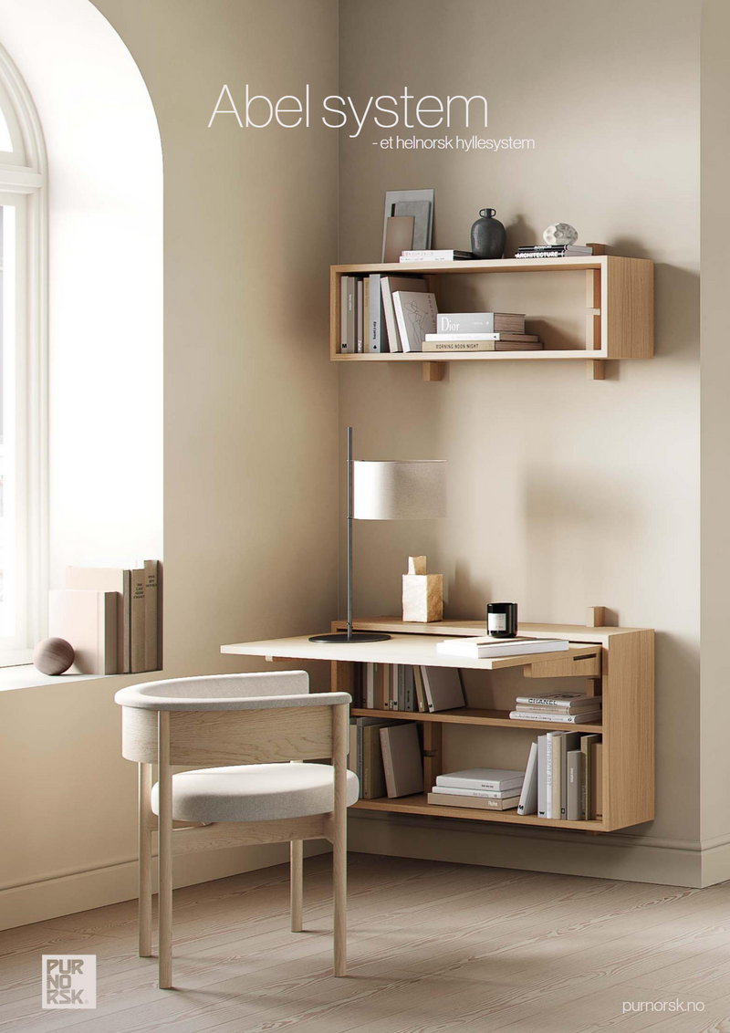 Abel System er et stilrent og fleksibelt, helnorsk hyllesystem utviklet av Pur...