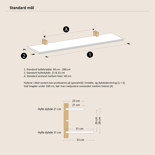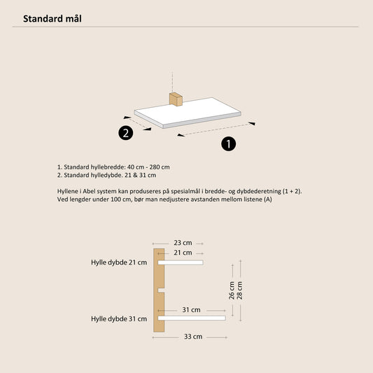 Abel system - Hylleplate - 40 cm på dobbel list