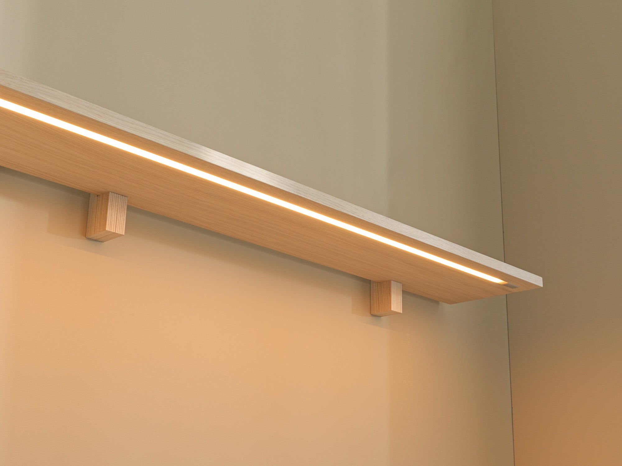Lyslisten kan integreres sømløst i hyller, rammer og konsoller.