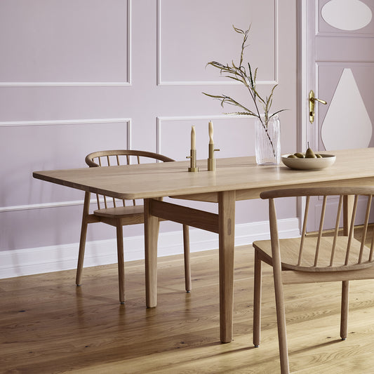 Spisebordene fra Pur Norsk kombinerer funksjonalitet, håndverk og tidløst design – utviklet og produsert i Norge. Hvert bord er laget med fokus på kvalitet, naturlige materialer og et rent uttrykk som passer både i moderne og klassiske hjem. Med valg i heltre eik eller valnøtt kan du skape et personlig uttrykk som varer. Et spisebord fra Pur Norsk er mer enn et møbel – det er et samlingspunkt laget for hverdagsliv, måltider og gode samtaler.