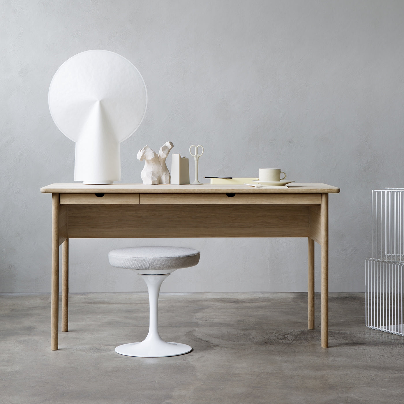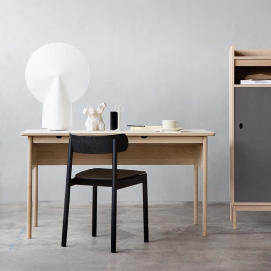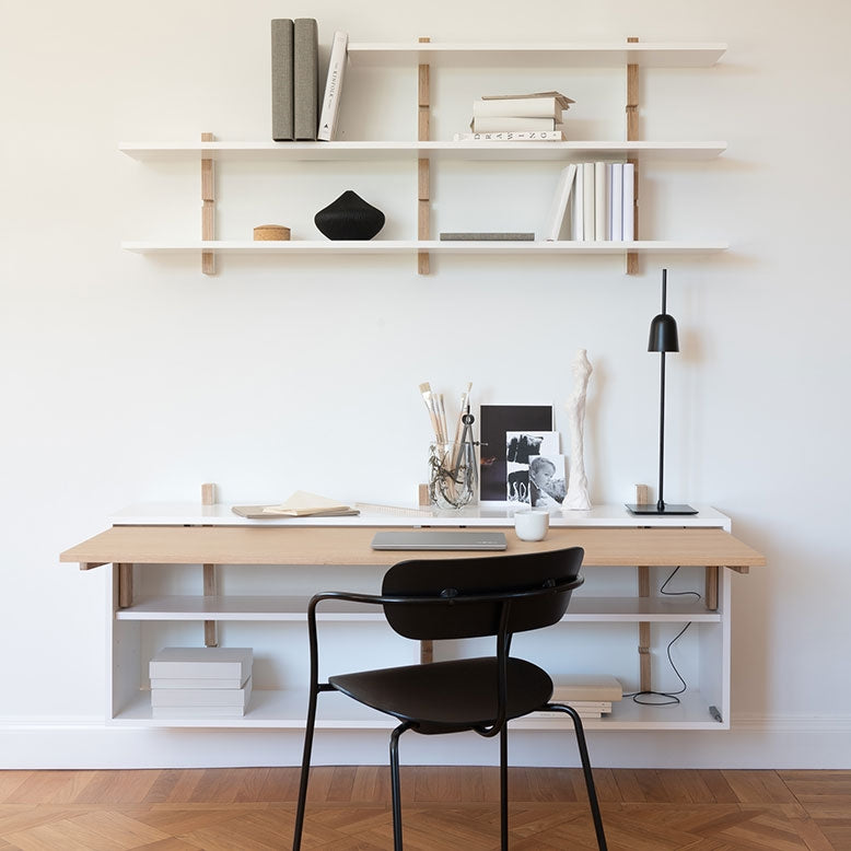 Kombiner løsningen med en komfortabel stol som inviterer til fokus og god arbeidsflyt, og legg til en liten lampe som gir riktig belysning og skaper en lun og inspirerende atmosfære.