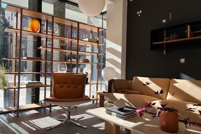 I noen tilfeller kan vi ordne med at varen kan hentes i vår forretning på Majorstuen. Dette gjelder ikke sofaer og større møbler. Man må påberegne 1 uke ekstra fra varen ankommer fjernlager til vi får transportert den til vår butikk. Siden vi ikke har lagringsmuligheter i butikk, må kunde hente varen innen 1-2 virkedager.