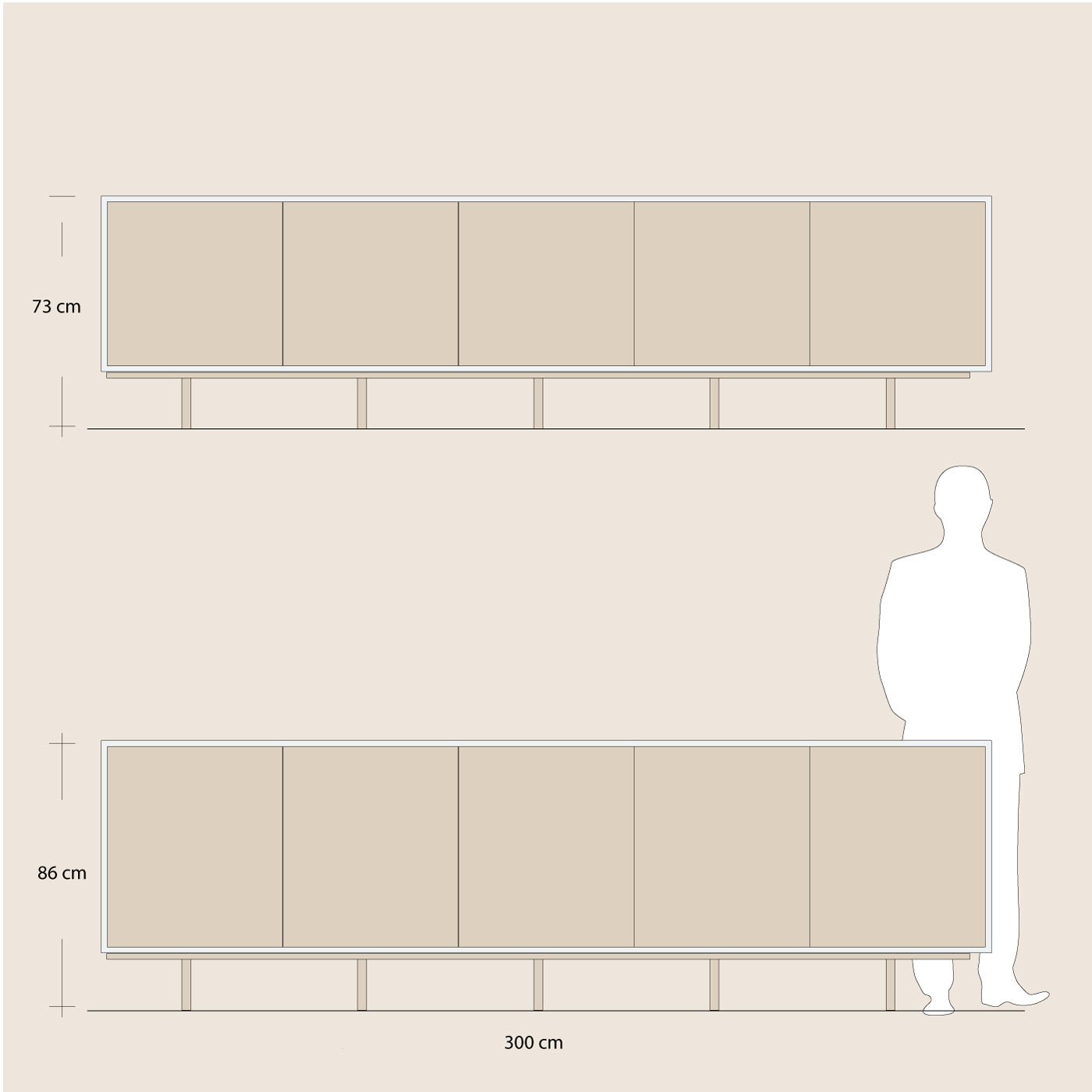 Konsoll med 5 dører | 41 cm | 300 cm | 47 / 60 / 73 / 86 cm |