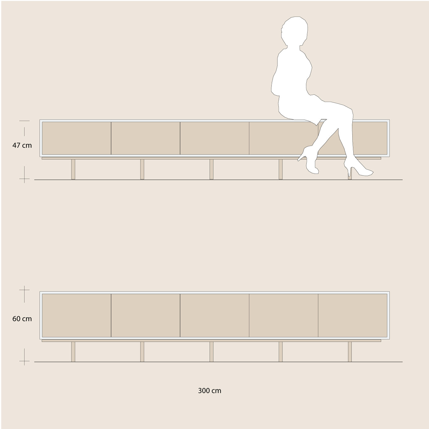 Konsoll med 5 dører | 41 cm | 300 cm | 47 / 60 / 73 / 86 cm |