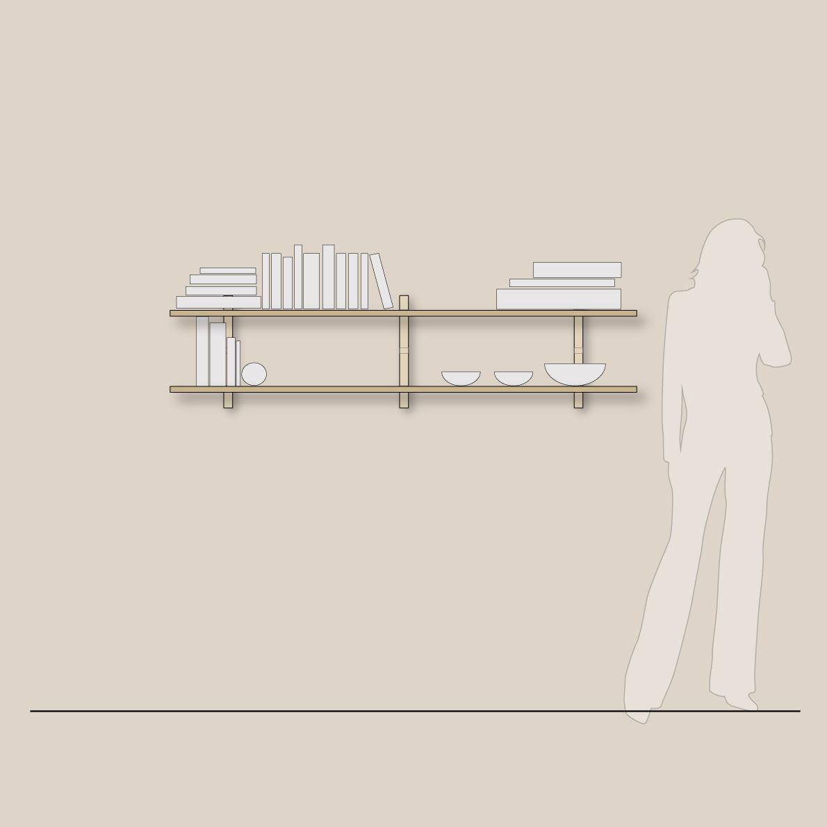 En enkel og minimalistisk hyllekombinasjon. Det unike konstruksjonsprinsippet med å flytte komponenter på en enkel og rask måte gir en fantastisk fleksibilitet. Dette gjør at man aldri blir lei av å flytte på komponentene og inviterer til lek og utforskning av nye konfigurasjonsmuligheter. Finn en kombinasjon som passer ditt interiør.