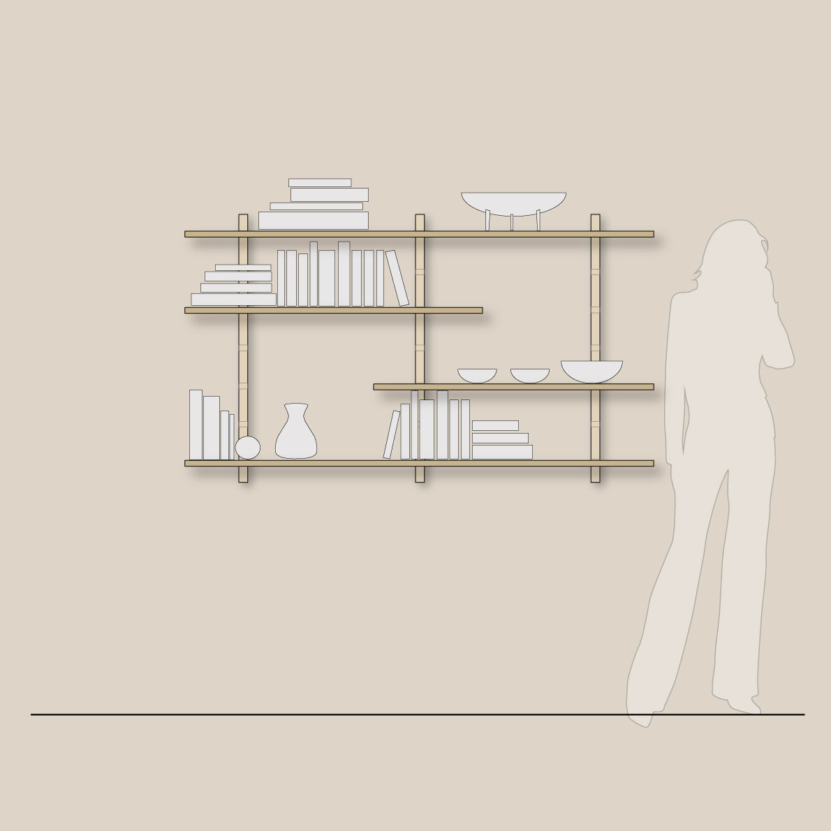 En enkel og minimalistisk hyllekombinasjon. Det unike konstruksjonsprinsippet med å flytte komponenter på en enkel og rask måte gir en fantastisk fleksibilitet. Dette gjør at man aldri blir lei av å flytte på komponentene og inviterer til lek og utforskning av nye konfigurasjonsmuligheter. Finn en kombinasjon som passer ditt interiør.