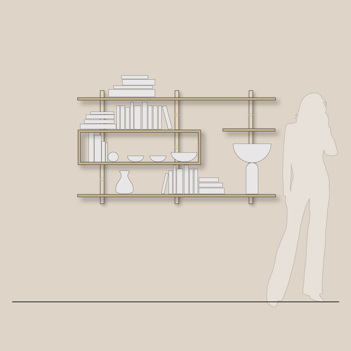 En enkel og minimalistisk hyllekombinasjon. Det unike konstruksjonsprinsippet med å flytte komponenter på en enkel og rask måte gir en fantastisk fleksibilitet. Dette gjør at man aldri blir lei av å flytte på komponentene og inviterer til lek og utforskning av nye konfigurasjonsmuligheter. Finn en kombinasjon som passer ditt interiør.