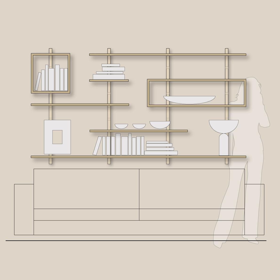 Det unike konstruksjonsprinsippet med å flytte komponenter på en enkel og rask måte gir en fantastisk fleksibilitet. Dette gjør at man aldri blir lei av å flytte på komponentene og inviterer til lek og utforskning av nye konfigurasjonsmuligheter. Finn en kombinasjon som passer ditt interiør. |