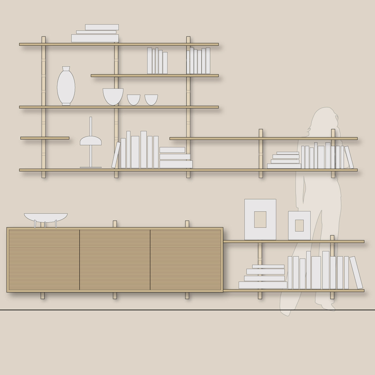 Det unike konstruksjonsprinsippet med å flytte komponenter på en enkel og rask måte gir en fantastisk fleksibilitet. Dette gjør at man aldri blir lei av å flytte på komponentene og inviterer til lek og utforskning av nye konfigurasjonsmuligheter. Finn en kombinasjon som passer ditt interiør. |
