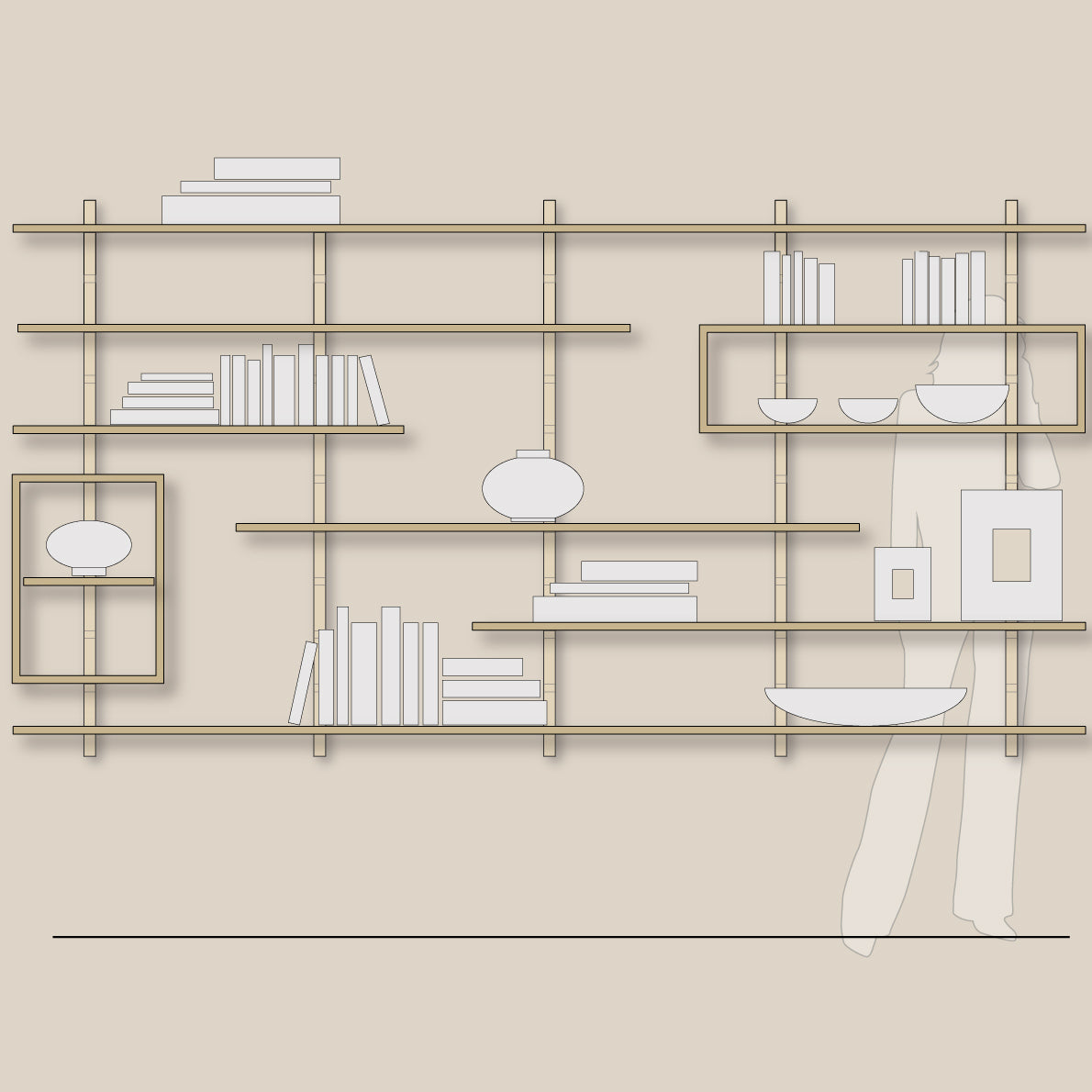 Det unike konstruksjonsprinsippet med å flytte komponenter på en enkel og rask måte gir en fantastisk fleksibilitet. Dette gjør at man aldri blir lei av å flytte på komponentene og inviterer til lek og utforskning av nye konfigurasjonsmuligheter. Finn en kombinasjon som passer ditt interiør. |