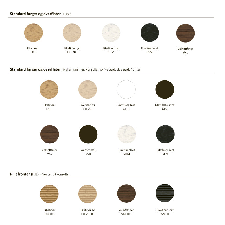 | Eikefiner lys | EKL 20 | Glatt flate Sort | GFS | ||||||||