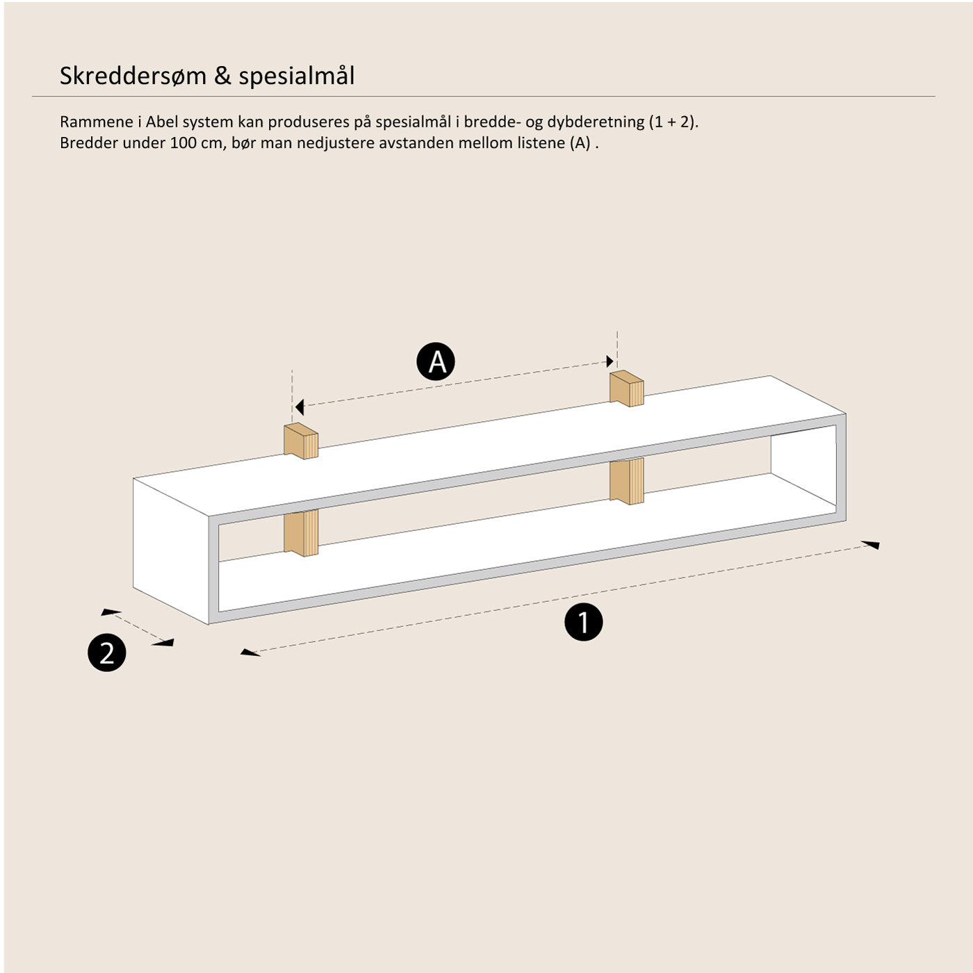 | Rammer setter et personlig preg på din Abel løsning. De skaper en fin dynamikk sammen med hyllplatene aller alene som et nattbord, stereobenk eller hylle i entre/barnerom/kjøkken | ||||