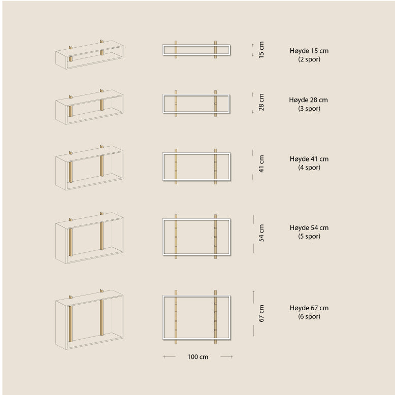Detaljer NB. Lister er ikke inkludert i prisoppsettet. Rammer på 40 og 60 cm kan monteres på singel list, men har mindre bæreevne enn dobbel list. Til bøker og tyngre gjenstander anbefales derfor dobbel list. |