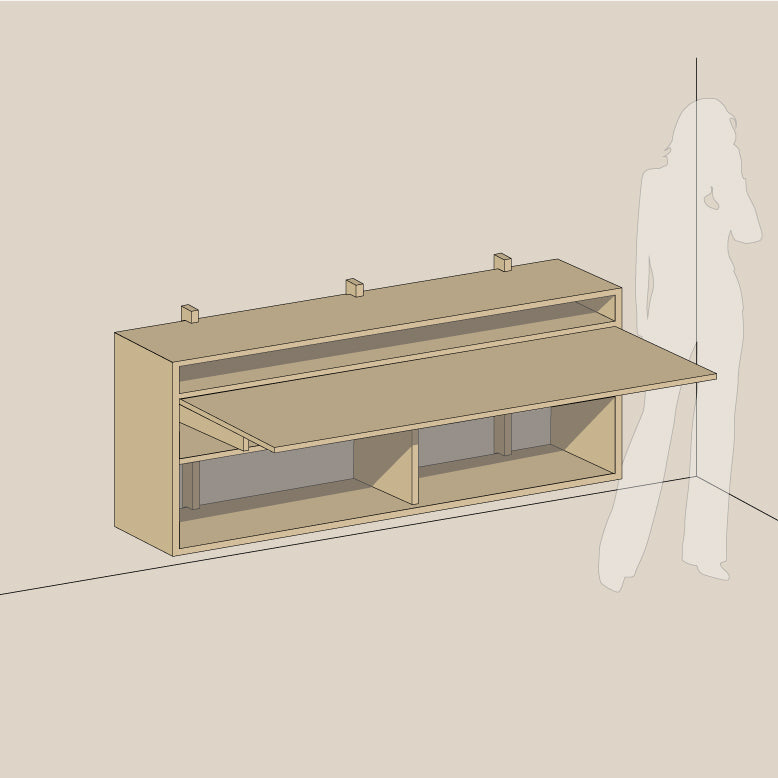 Skrivebordet monteres enkelt på vegg i ideell høyde, og den smarte klaffeløsningen gjør det både praktisk, elegant og plassbesparende.
