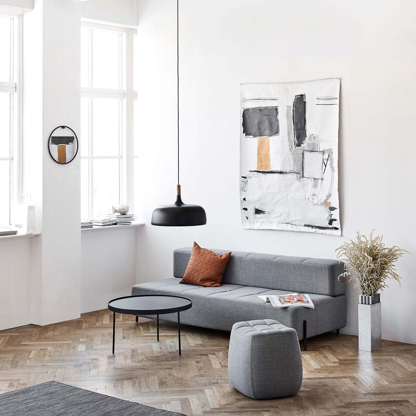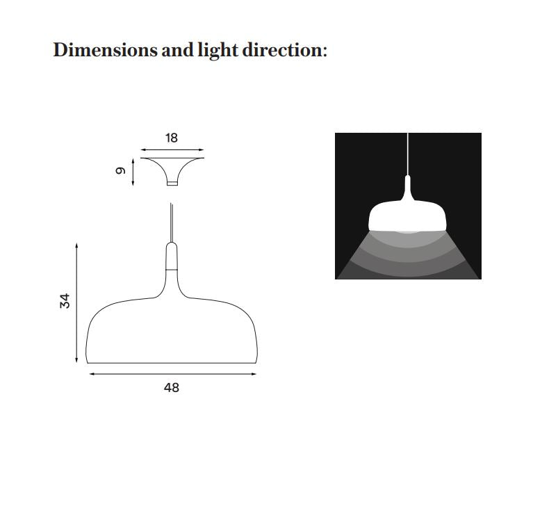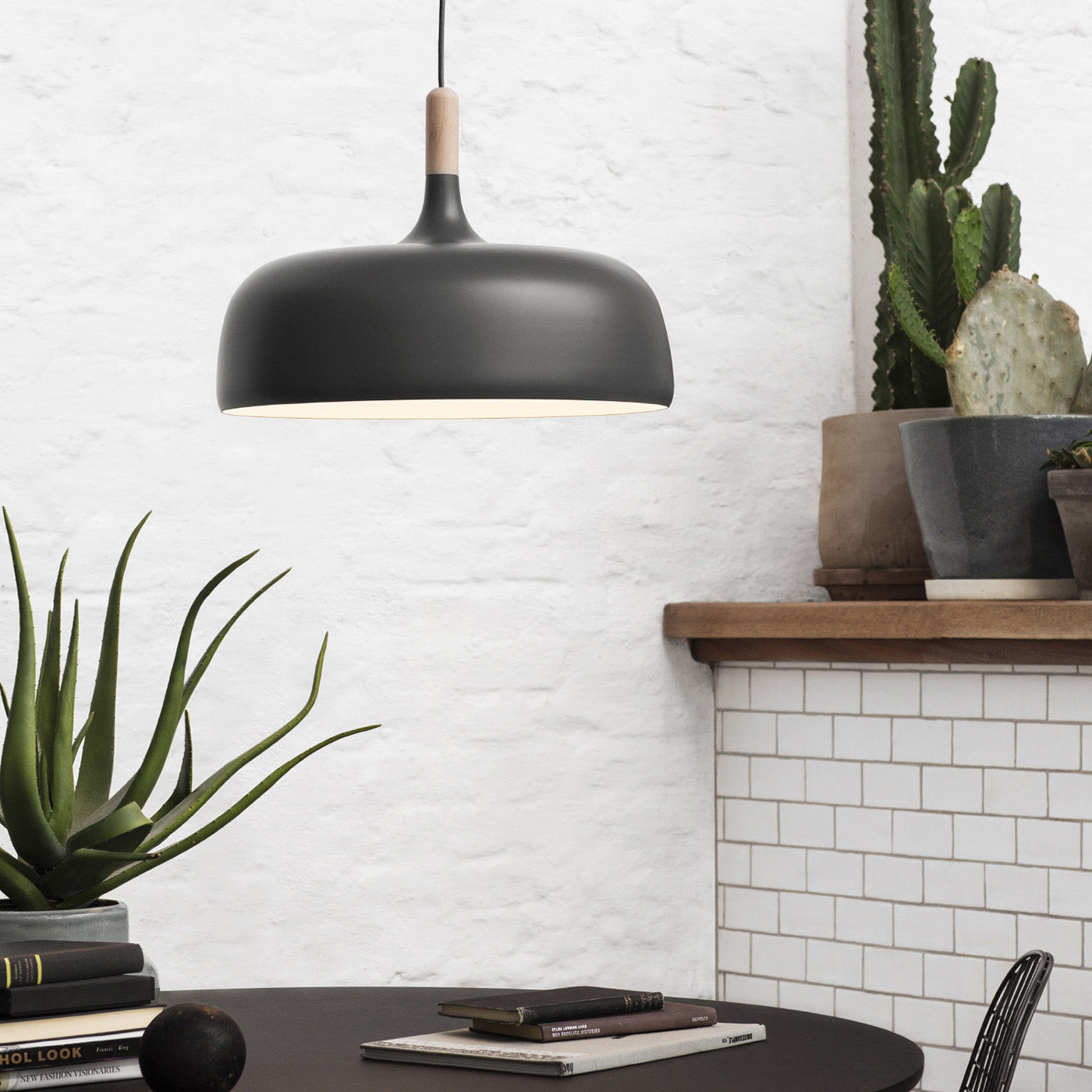 Acorns form er inspirert av en naturlig form. Skjermen ligner det tomme skallet fra en eikenøtt, som blir hul når den modne nøtten har brutt seg fri. Som en eikenøttstamme, smalner toppen av skyggen til en taktil form. Strømlinjeformet og sofistikert, er lampen hengt opp fra taket i en silkekabel som skjuler strømkabelen inni den. Lampen festes til taket med en himlingshylse laget i samme stil som skjermen. Denne pendellampen tilhører en ny serie design som gjenskaper naturens skjønnhet i et funksjonelt objekt. Lampen er laget i aluminium og bøk eller valnøtt, og malt enten hvit eller grå. Lampen kombinerer naturlige materialer med upretensiøse farger. Den matt svarte versjonen fremhever Acorns særegne form og skaper større kontrast med omgivelsene. Acorn er et naturlig supplement til moderne interiør, og en flott måte å skinne lys over bordplater, pulter og arbeidsflater. |