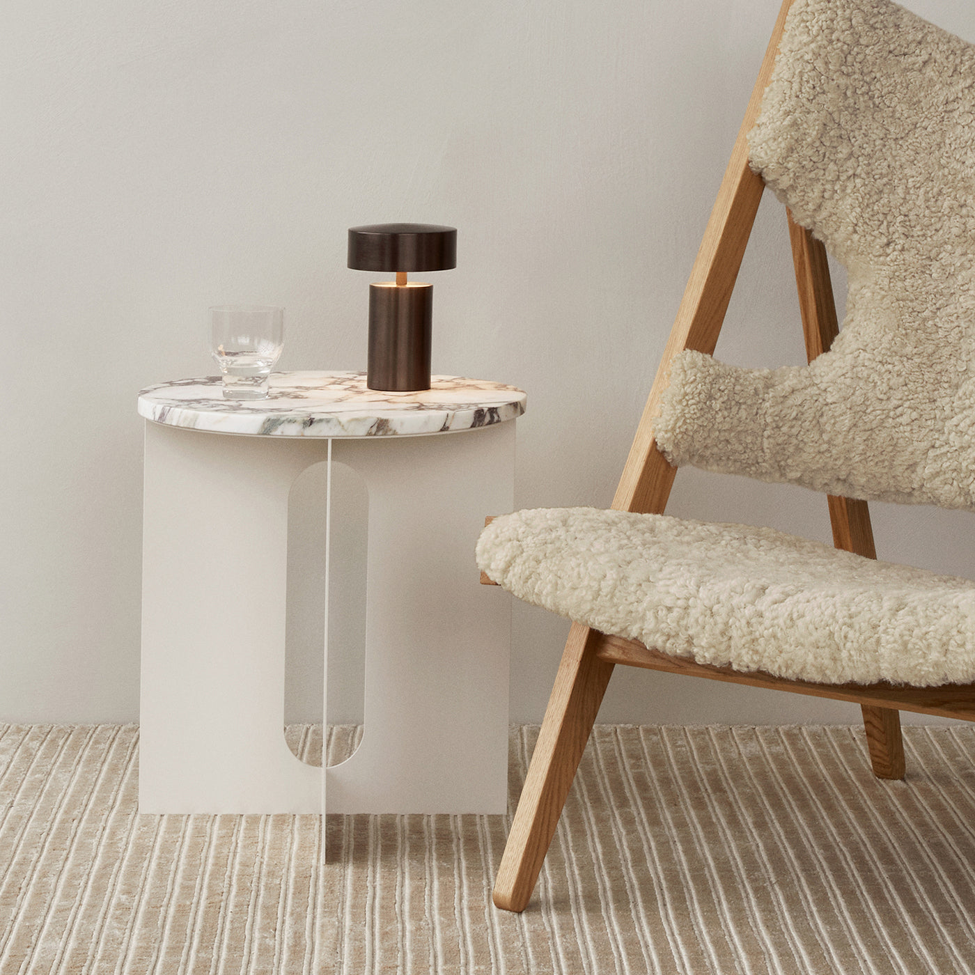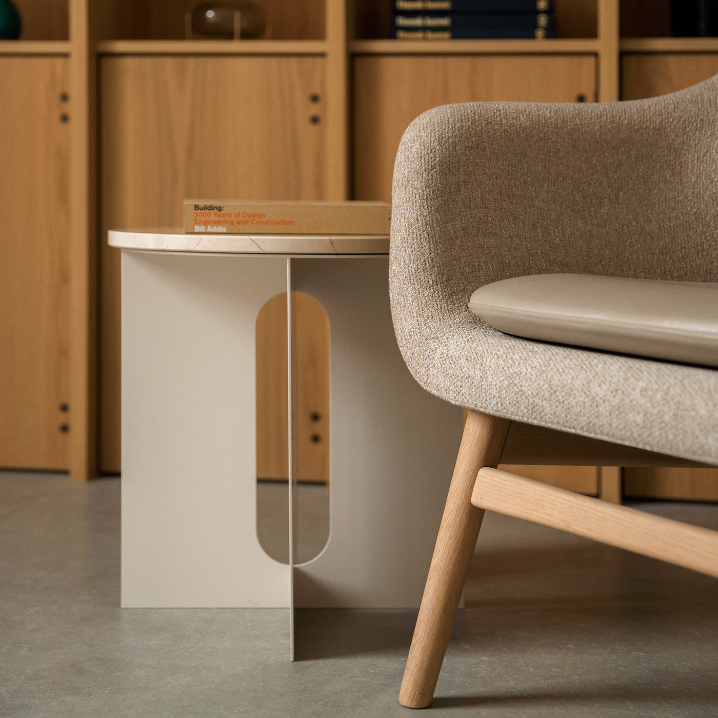 Distinkt med sin lekne, men elegante silhuett, ble Androgynes sidebord først utformet for Menu Space Cafe, men ble raskt tatt i produksjon for et større publikum.