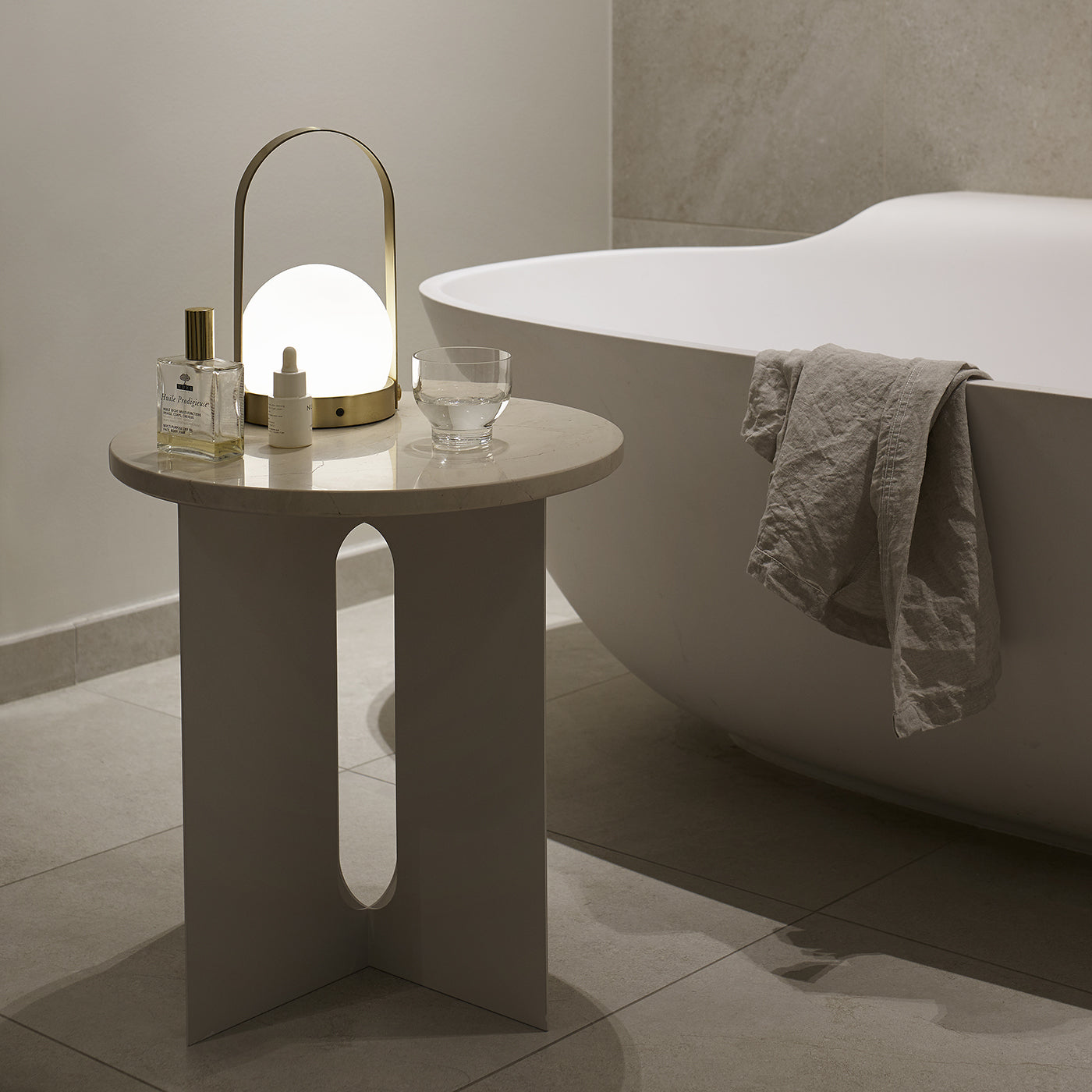 Androgyne Sofabord - Rundt 40cm - Hvitt stål