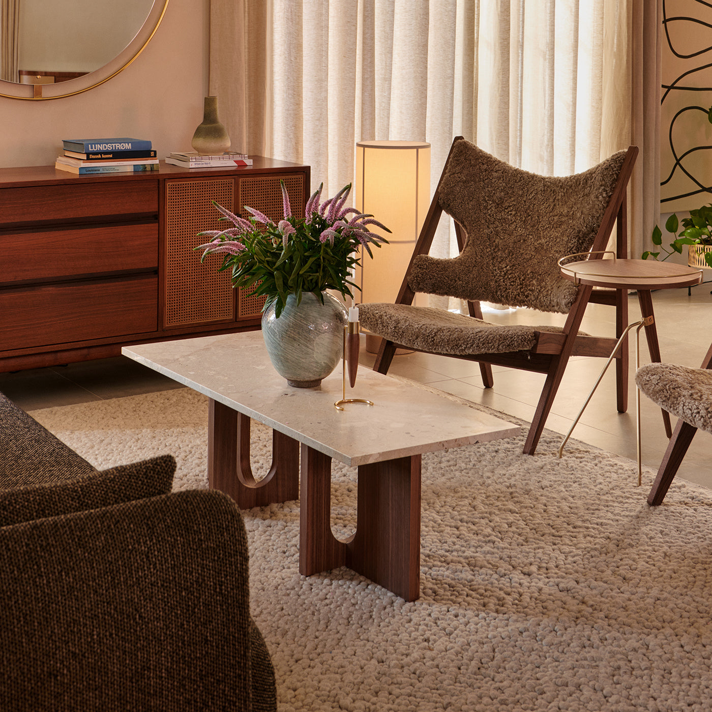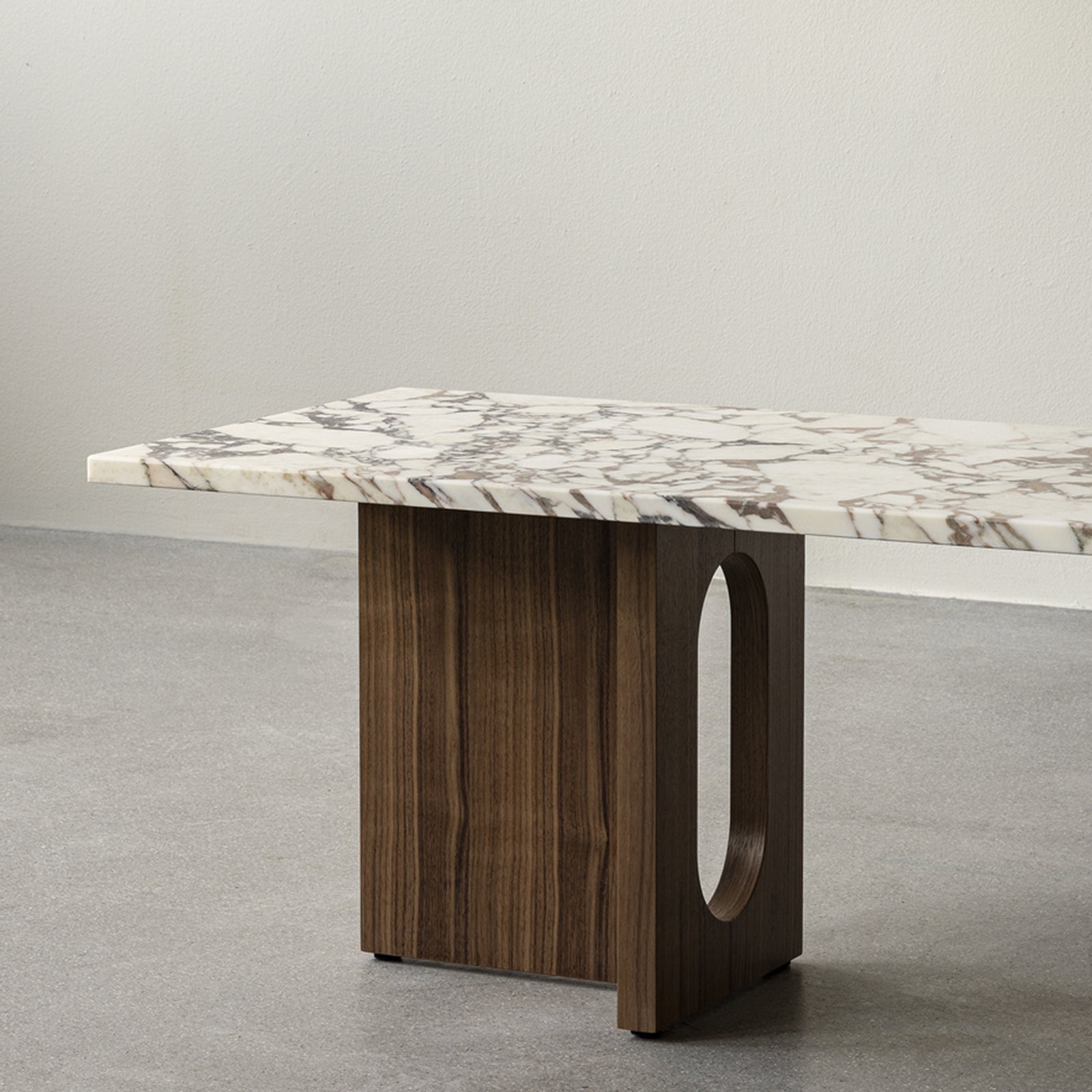 Et vakkert og praktisk sidebord som gjør smart bruk av håndverk og taktile materialer, det enkle silhouetten av Androgyne er preget av motsetninger. Den rene materialbruken står i kontrast til en raffinert silhuett av solide og myke linjer, som lever opp til navnet takket være til dens kombinasjon av maskuline og feminine egenskaper. Sammensetningen av rik eik – med en naturlig eller mørk beiset finish – valnøtt og Kunis Breccia-stein skaper et særegent design kan tilpasses til enhver interiørstil.