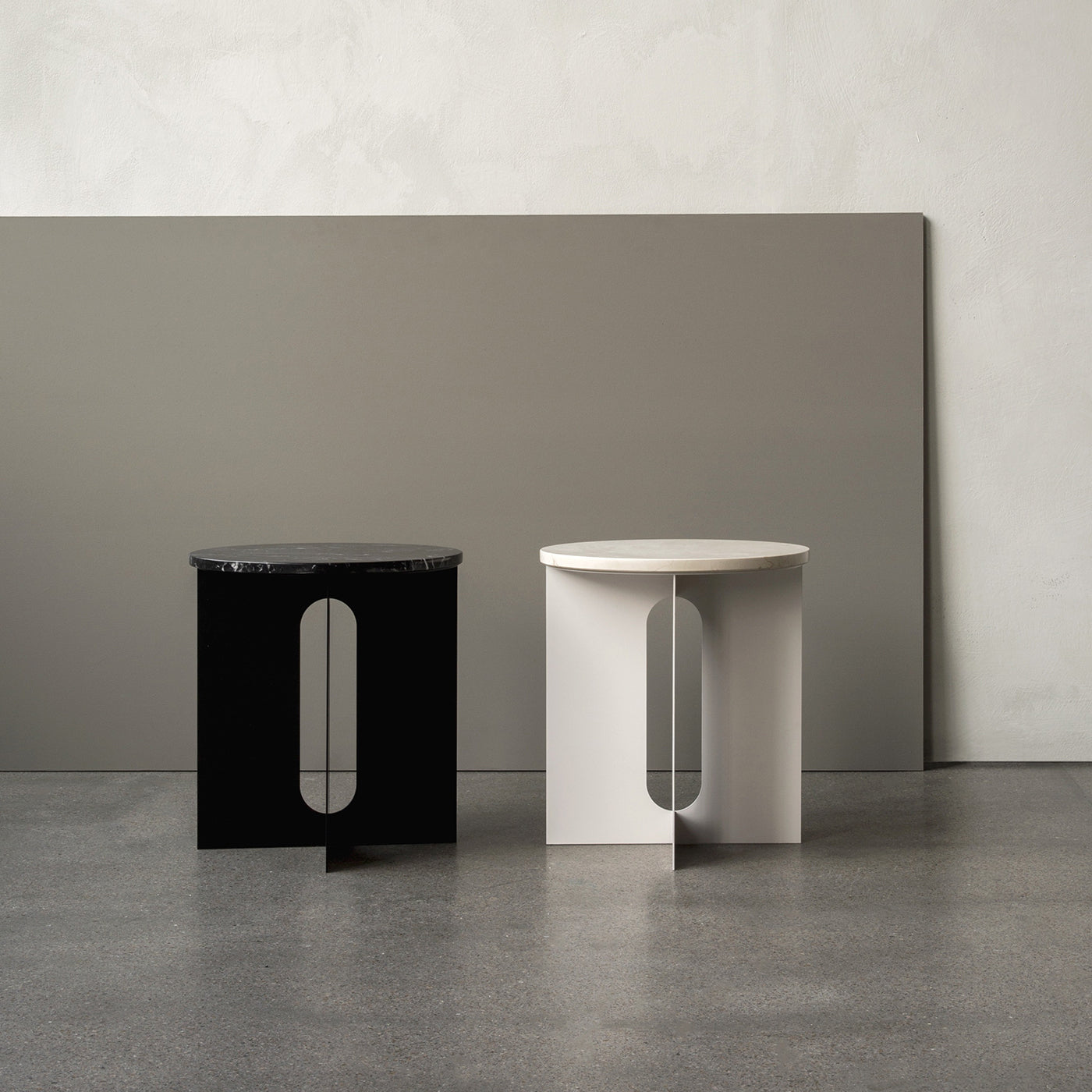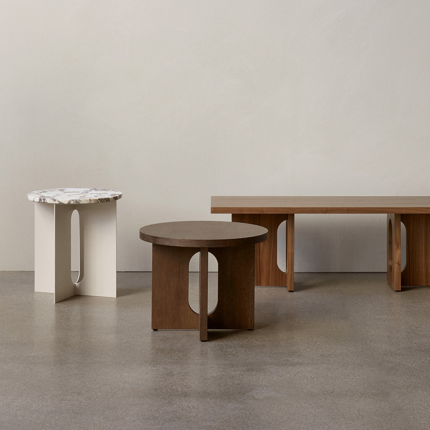 Distinkt med sin lekne, men elegante silhuett, ble Androgynes sidebord først utformet for Menu Space Cafe, men ble raskt tatt i produksjon for et større publikum.