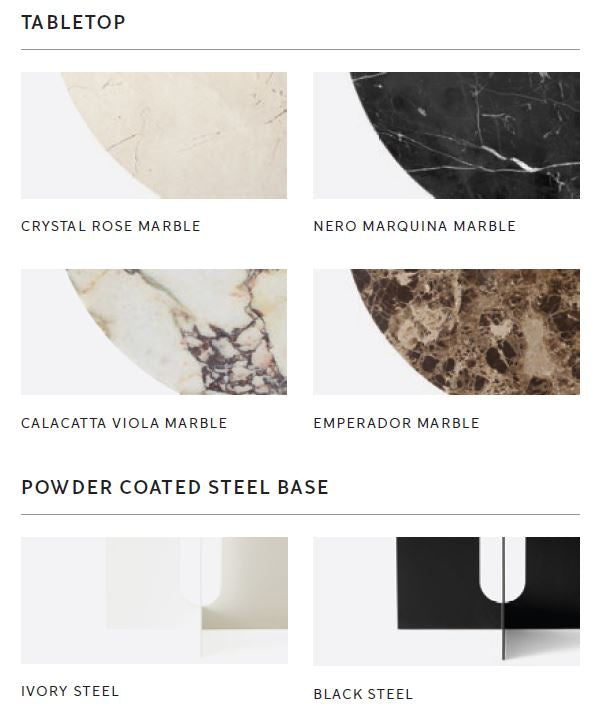 Stålbase med marmor topp: H 44,8 cm Ø 42 cm