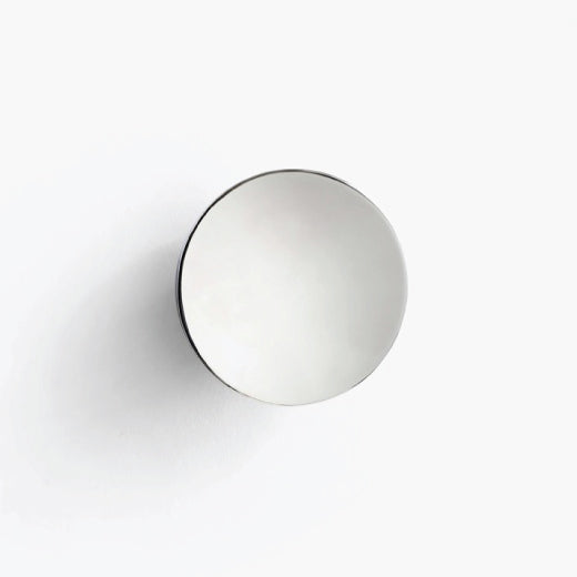 Den dristige vesentlighet av Aura speil er det som genererer sin unike indre glød. Dens polerte metallform plukker opp lyset i omgivelsene, og skaper ulike refleksjoner gjennom en kombinasjon av harde flater og lange kurver. Designet for å bli rørt og holdt, er dens vekt og styrke motvirket av mykhet av sin glans og skulpturelle buede form. Mål D: 47 x Ø: 97 mm |