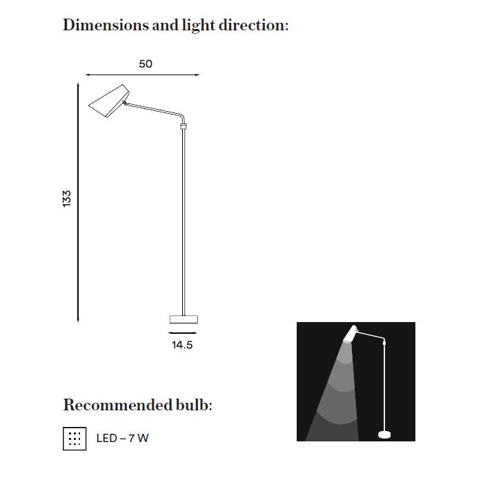 Product type: Floor lamp Design: Birger Dahl, 1952/2021 Shade material: Aluminium Shade and base colours: Black (shade inner colour is same as outer colour) Body material: Steel Body and joints colour: Brass, black or steel Wire: Black, 200 cm Switch: On/o switch on the shade Bulb: E27, Max. 11 W LED only Voltage: 220V - 240V ~ 50/60Hz Net weight: 5.3 g |