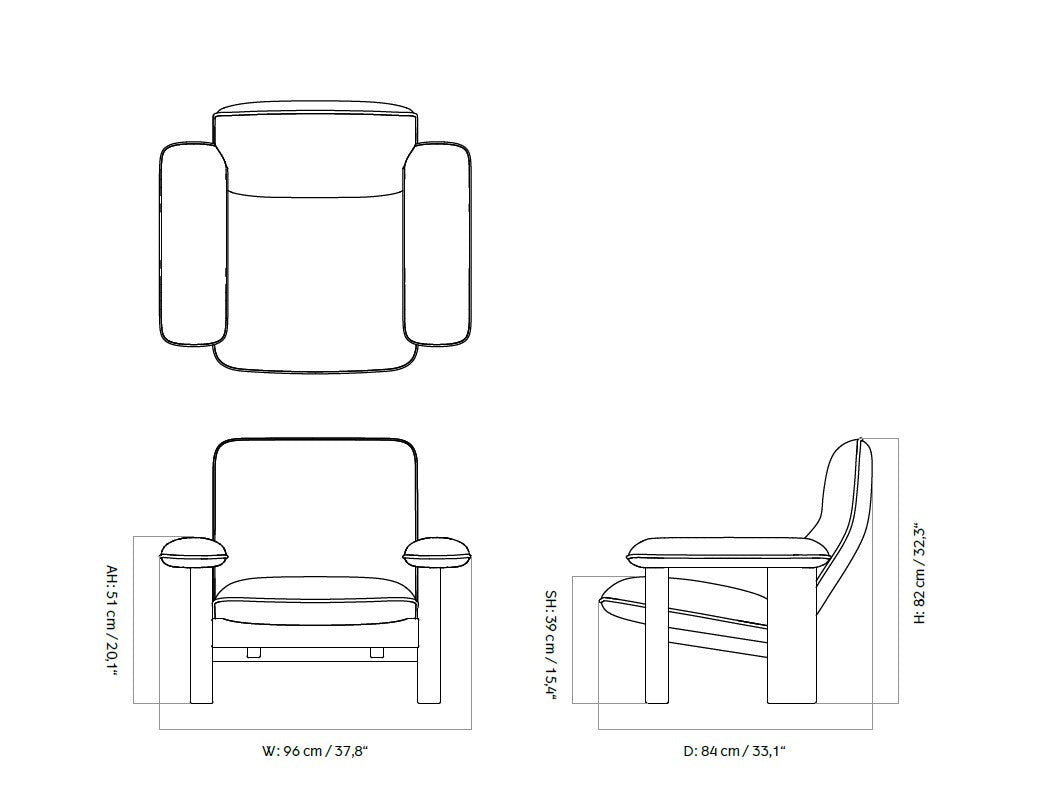 Høyde: 82 cm Sittehøyde: 39 cm Armlene høyde: 51 cm Bredde: 96 cm Dybde: 84 cm |