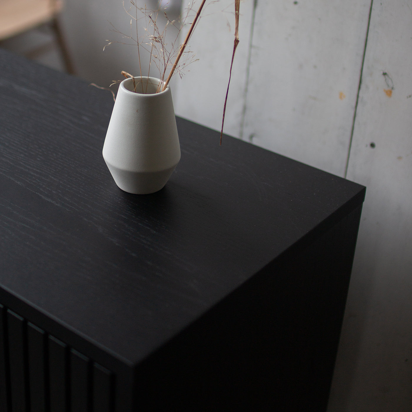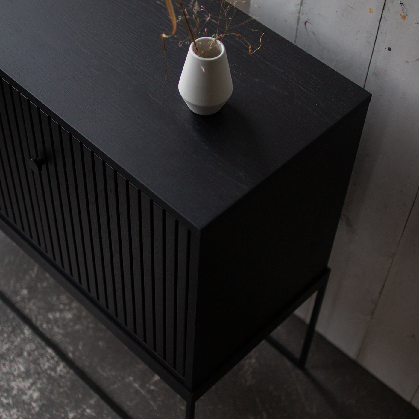 Dis-skapet er kombinasjon av overdimensjonering og minimalisme i en kraftig motsetning. Solidt håndverk og ærlige eikematerialer kompletteres av en rustfritt stålramme. Velg mellom vanlige dører; vakker i sin nordiske enkelhet, eller fiskebeinsmønster på dører som gir et særegent og sofistikert uttrykk. |