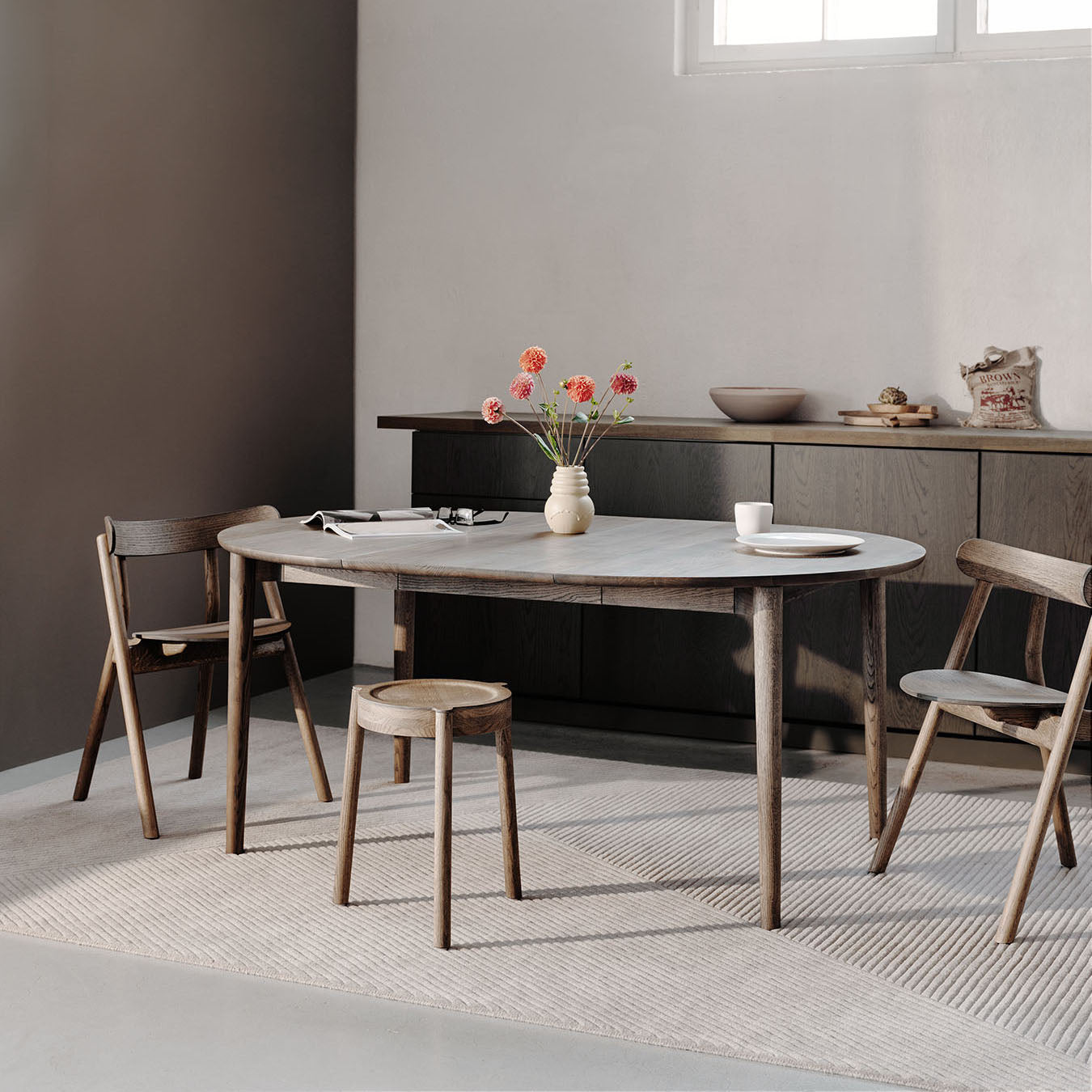 Med sitt buede underdelog lett vinklede ben, utnytter dette tidløse spisebordet de vakre egenskapene til tradisjonelt håndlaget massiv eik, og gir denne eldgamle essensielle en følelse av letthet i tillegg til et mykt moderne uttrykk. Tilgjengelig i tre størrelser; to rektangulære og ett runde, alle Expand spisebord har et supermykt forlengelsessystem innebygd slik at de kan forstørres med opptil 100 cm for å romme ekstra gjester. Velg mellom enten en lys oljet, røkt eik eller svartmalt eikefinish. Bordforlengerplater selges separat Dette bordet kan inneholde opptil to forlengelsesplater. |