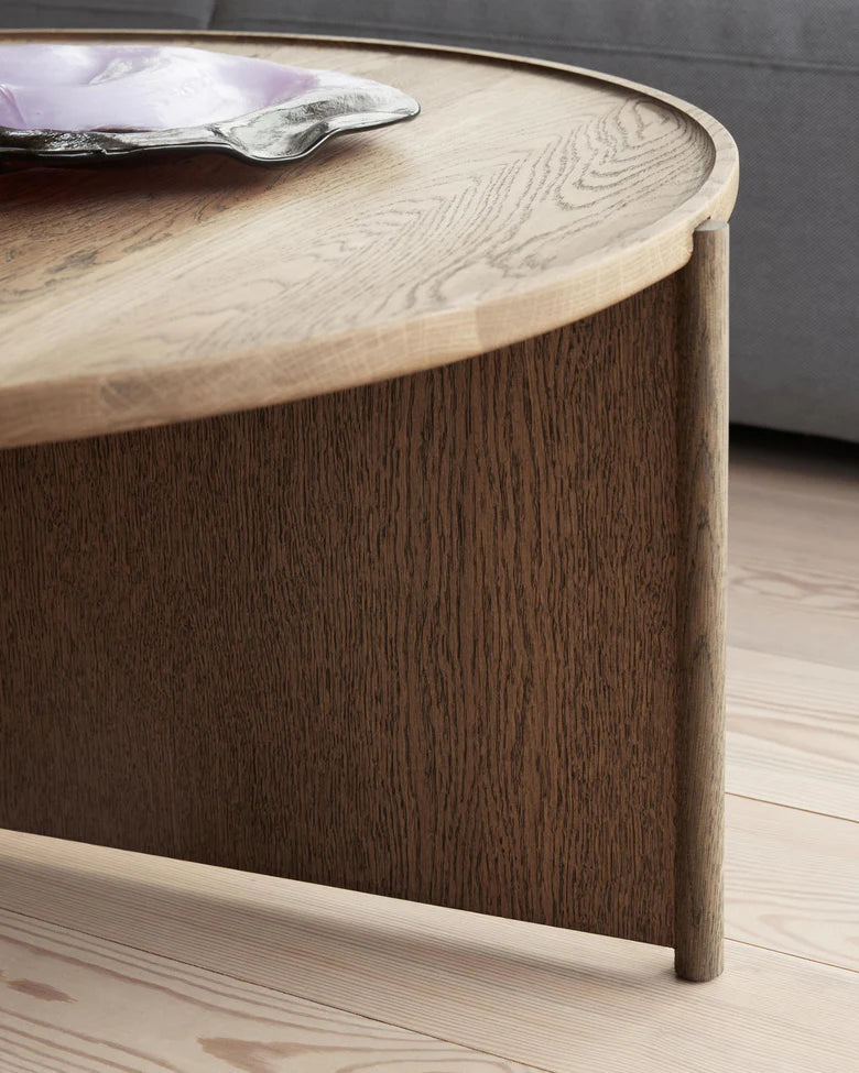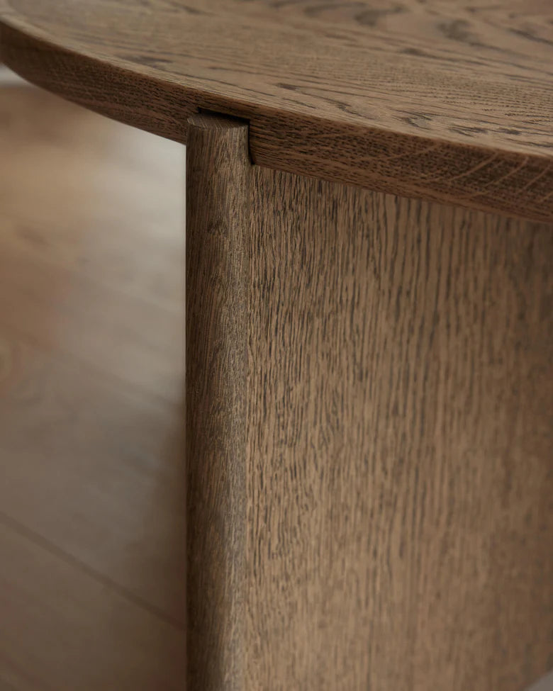 Laget i heltre eik og eikefiner, og tilgjengelig i røkt eller lys oljet eik, leveres Cling sofabordet flatpakket – noe som også bidrar til et lavere klimafotavtrykk.