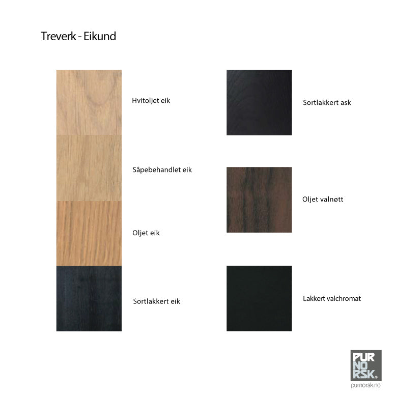 Behandlinger Det er viktig at overflatebehandlingen bevarer materialets taktilitet og estetikk, samtidig som de er i stand til å motstå de tøffe kravene i hverdagen. Såpebehandlet tre gir den mest autentiske opplevelsen for et naturmateriale, men vil kreve noe vedlikehold. For en mer beskyttende overflate kommer våre produkter i klar og hvit pigmentert olje. Vi bruker også et matt lakk som gjør det nesten vedlikeholdsfritt.Merk: Da tre er et naturlig produkt, vil variasjoner i farge og pigmentering oppstå. Tre møbler vil også forandre utseendet over tid som det påvirkes av miljøet der det er plassert. |