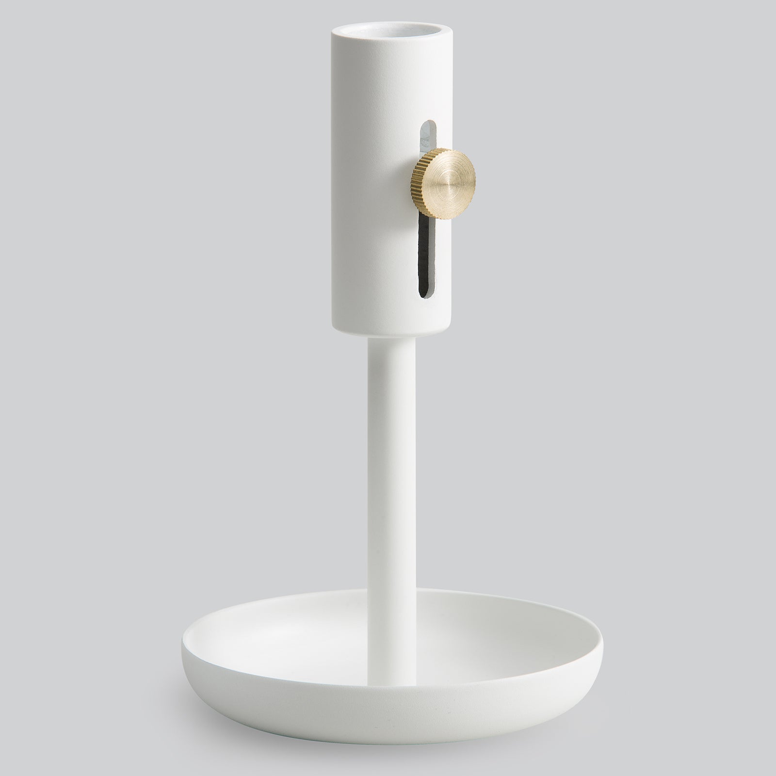 Bestemor lyser opp interiøret på den gammeldagse måten. I stedet for å snu strømbryteren, kan du slå en fyrstikk og se på hvordan koselig stearinlys sprer seg over rommet. Granny er en moderne stil med den klassiske lysestaken, og er designet med moderne innovasjoner som øker dens tiltrekningskraft. Basens kanter stiger oppover for å fange opp og inneholde smeltet voks før den drypper på den omkringliggende overflaten. Holderen er laget med en glidende messingknott som gjør det lettere å fjerne rester av voks og plassere et nytt lys inni.
