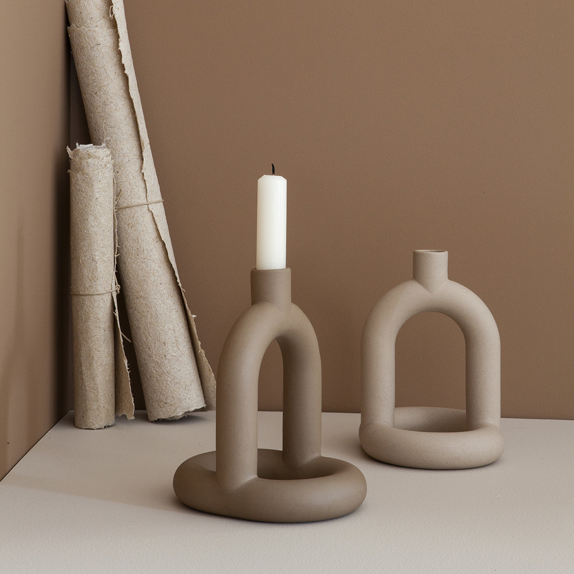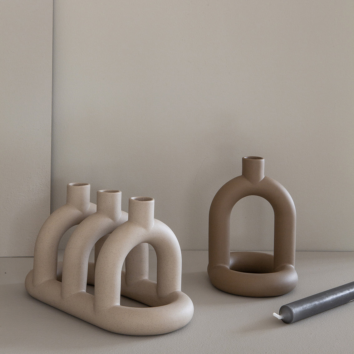 Kapp er en serie skulpturelle lysestaker laget av slipcast-steintøy. Inspirert av historien til vårt studiolokalitet - overfor en melkefabrikk som går tilbake til 1800 - Kapp-kolleksjonen hyller verktøyene og maskinene til fabrikken den kommer fra, mens de tre fargene representerer forskjellige elementer i melkeproduksjonen - den røde av mursteinen struktur, det svarte av jernovnen og det hvite av det ferdige produktet.