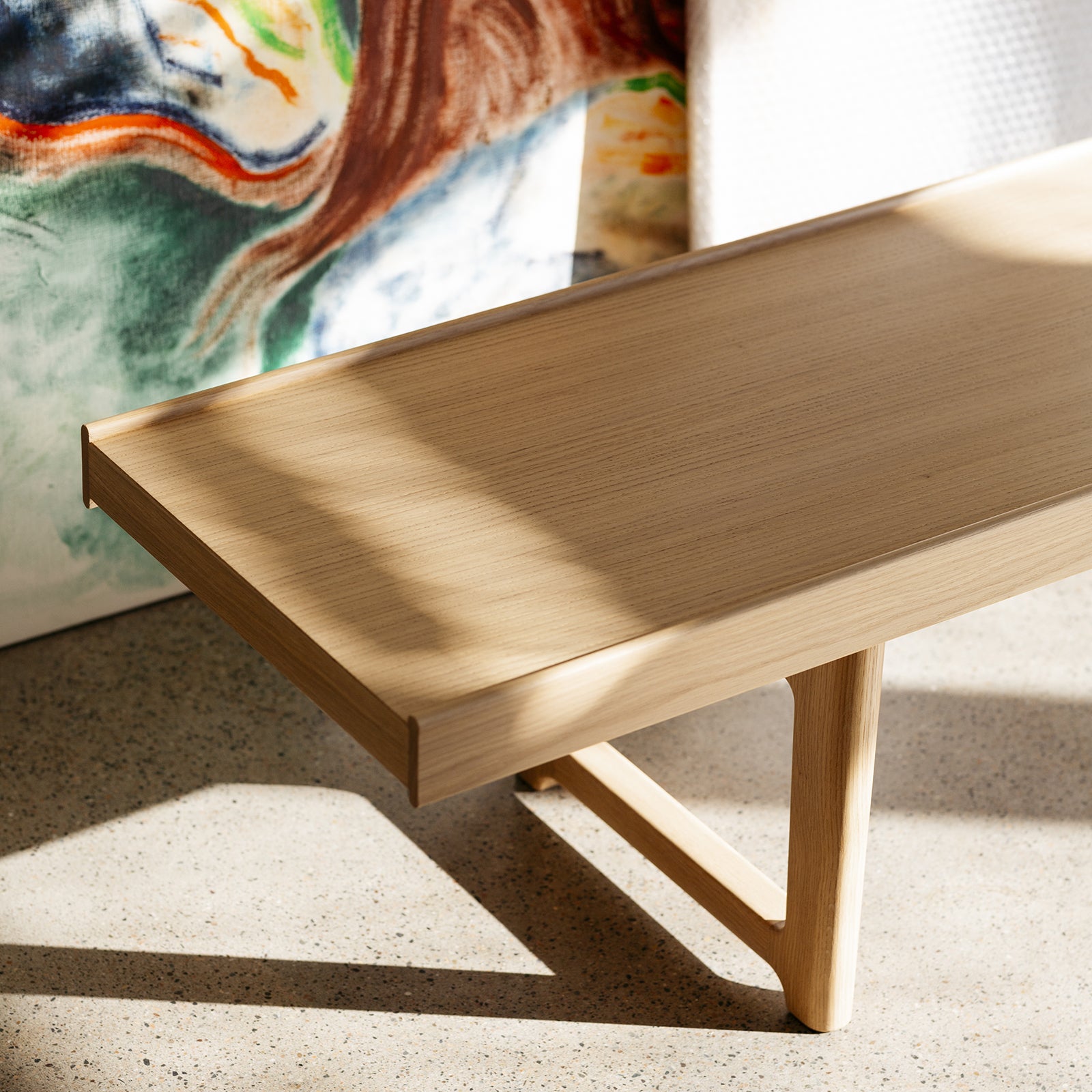 En ikonisk benk fra 50 tallet er tilbake. En elegant møbel som egner seg like godt som et benk i en entre eller som et TV bord i stuen. Flere designere har senere fått ansvaret å aktualisere benken ved å tegnet tilbehør som passer dagens liv og gir den et friskt skandinavisk uttrykk. Den nye Krobo med sine “add-ons” ble presentert på Stockholm Furniture i februar 2014. |