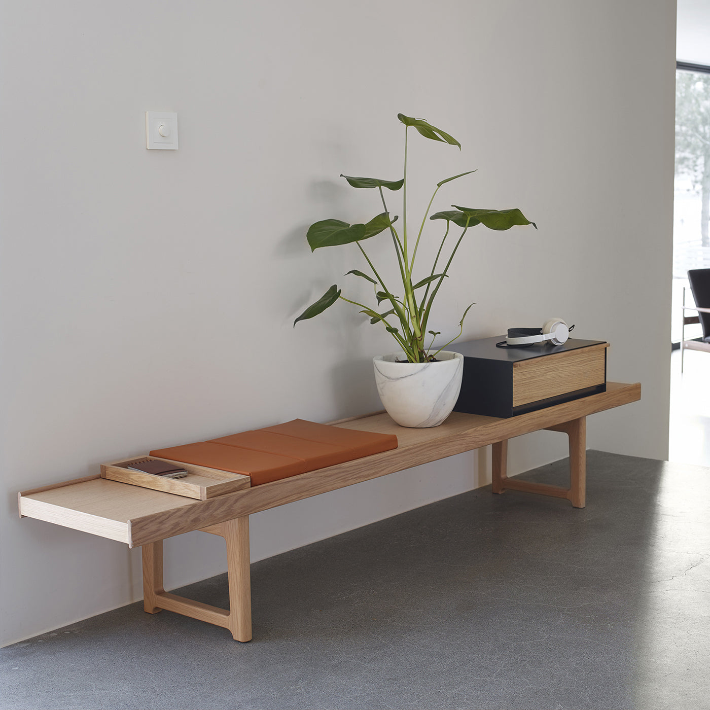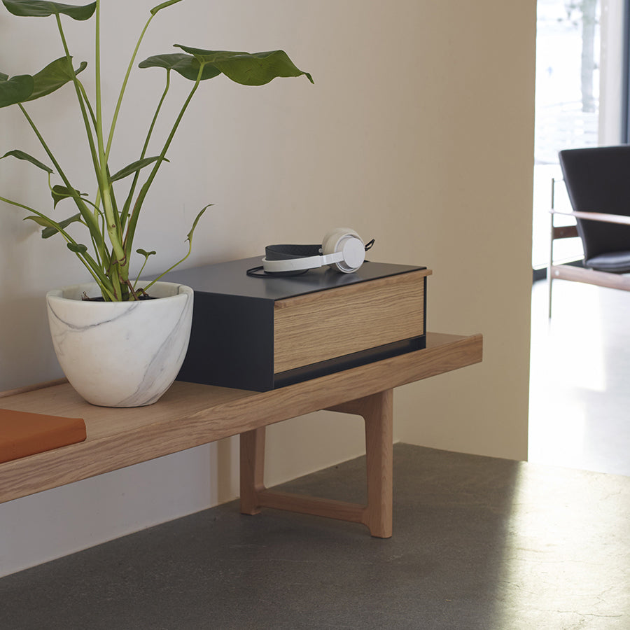 Beskrivelse: Den klassiske benken Krabo fra 60-tallet er tilbake, relansert av Fjordfiesta i samarbeid med Utopia Retro Modern. Anderssen & Voll har fått ansvaret å aktualisere benken og har tegnet en serie nye tilbehør som passer dagens liv og gir den et friskt skandinavisk uttrykk.Den nye Krobo med sine “add-ons” ble presentert på Stockholm Furniture i februar 2014 Design: Anderssen&Voll 2014 |