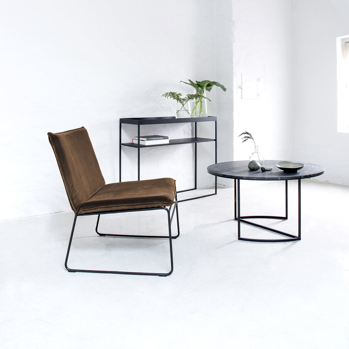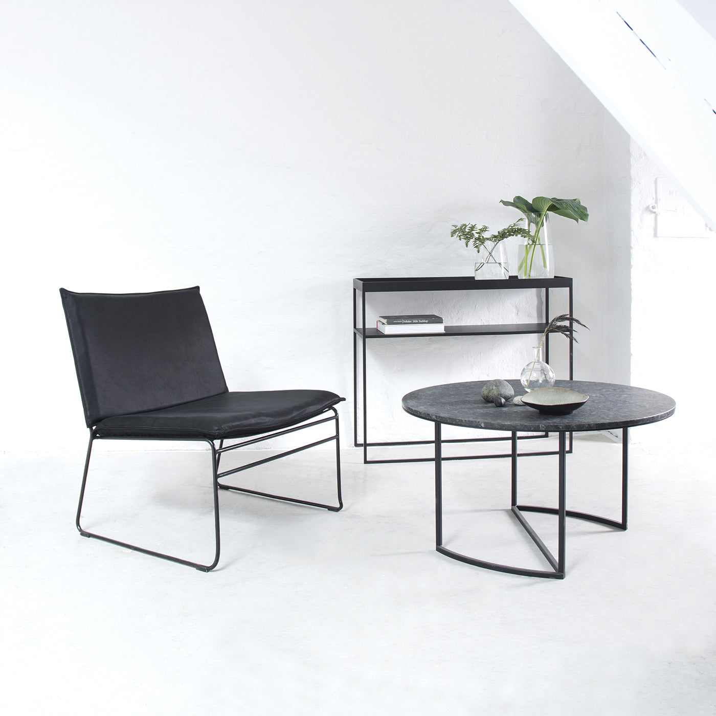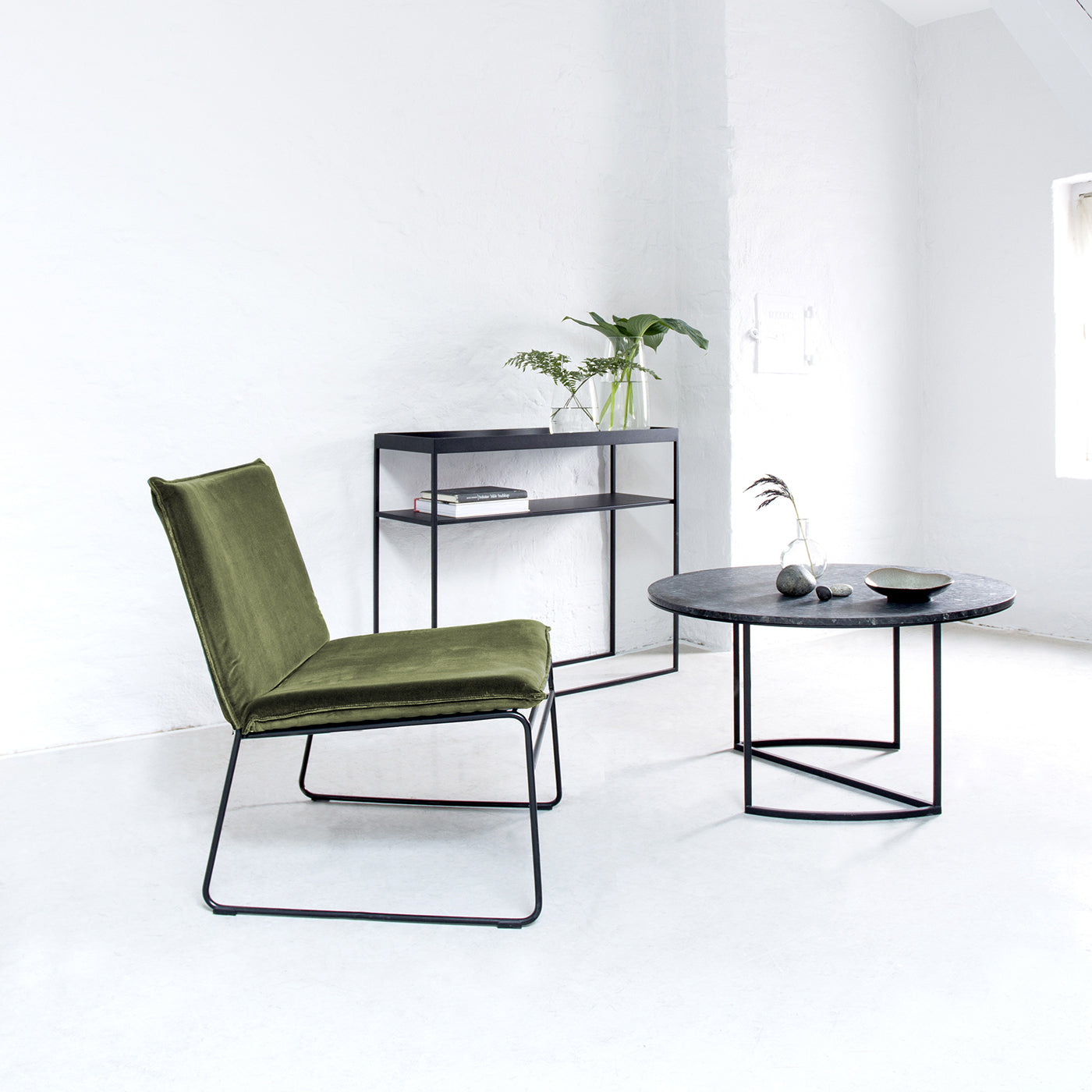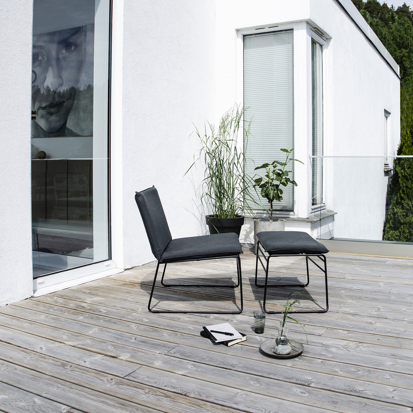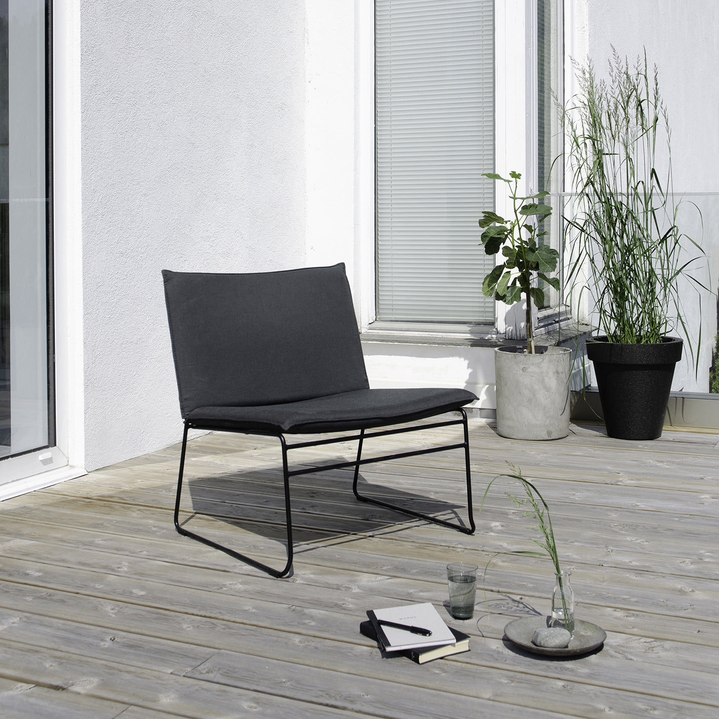 Materialer Stabbelbar Lounge stol for innendørs og utendørs bruk.Pulverlakkert stål - svart Dimensjoner Bredde 64 cm Dybde 68 cm Høyde 70 cm Setehøyde 36 cm Avtagbare sete- og ryggputer med glidelås tilgjengelig i et bredt spekter av tekstiler og lær. |