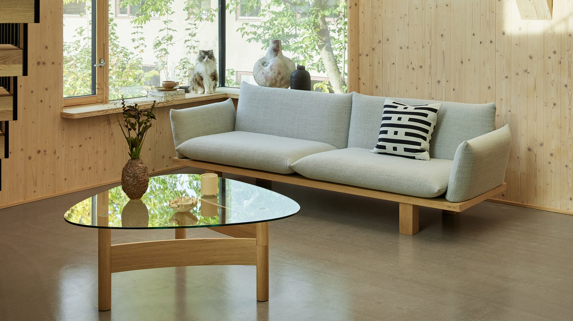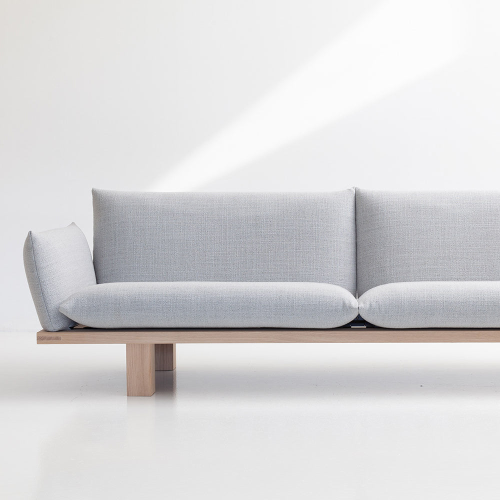Med potensialet til å vare i generasjoner, legemliggjør LESS en blanding av komfort og funksjonalitet uten overflødig kompleksitet. Ideen til sofaen ble til da Lars stilte seg selv følgende spørsmål: Hva kreves minimum for å konstruere en fullt funksjonell sofa? Og løsningen ble: en enkel treramme som fungerer som «ryggraden» i hele sofaen, både estetisk og funksjonelt. Denne rammen er bevisst synlig fra alle vinkler, og fungerer som en sokkel for de myke putene. Alle hjelpekomponenter forankres sikkert til denne primærstrukturen. Mens setefjærer er forhåndsmontert på vår fabrikk, gjøres montering av bena og støttene for rygg og armlener av brukeren. Etter dette skyves rygger og armlener enkelt på støttene, og seteputene plasseres deretter. |