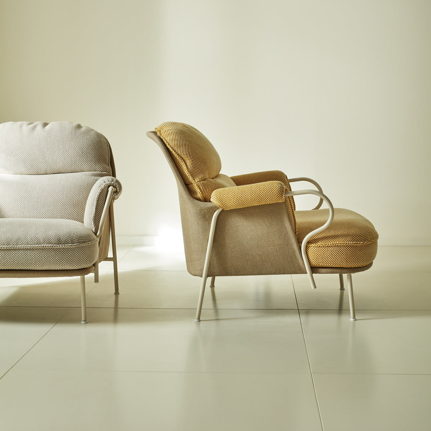 Lyra Lounge er en feel-good lenestol som kombinerer utsøkt design med uslåelig komfort og er garantert en favoritt lenestol, i alle omgivelser. Den myke polstringen og den perfekte vinkelen suger deg bokstavelig talt inn i det og får deg til å føle for å falle ned i en haug med puter. Takket være den smarte lerretskonstruksjonen er lenestolen lett og lett å flytte. Til tross for sin sjenerøse størrelse. Kombiner den med den matchende fotskammelen for den ultimate komforten.Polstringen kommer i enten skinn eller tekstil, noe som gir Lyra Lounge et mykt og forlokkende utseende. Basen kommer i et standard lerret og stålet kan bestilles i en rekke RAL farger. |
