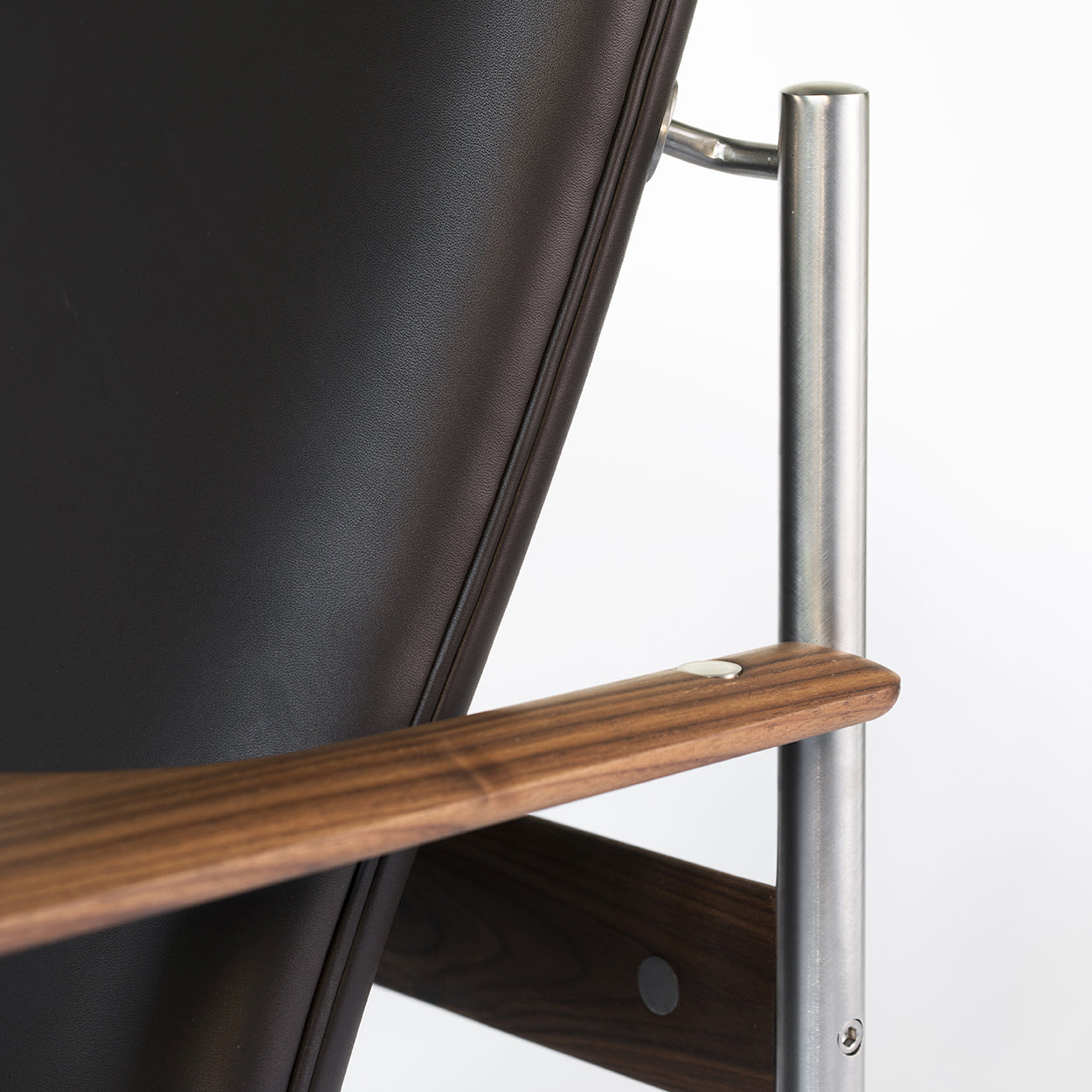 Stolen ble satt i produskjon i 1959 ble offisielt vist for første gang under møbelmessen i Köln januar 1960. Ramme i stål og rosentre, trukket i klassisk sort skinn. | |||||