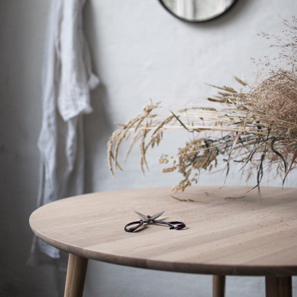 En bordplate strippet for unødvendig detaljer støttet av slanke, vinklede bena legger opp til den undervurderte elegansen av "Non" spisebord. Inspirert av spisestuen vår stol med samme navn, det er et godt valg enten du er ute etter et elegant skrivebord eller du har et avgrenset spiseplass. "Non" spisebord kommer i to kompakte størrelser og diverse finish av massiv eik. |