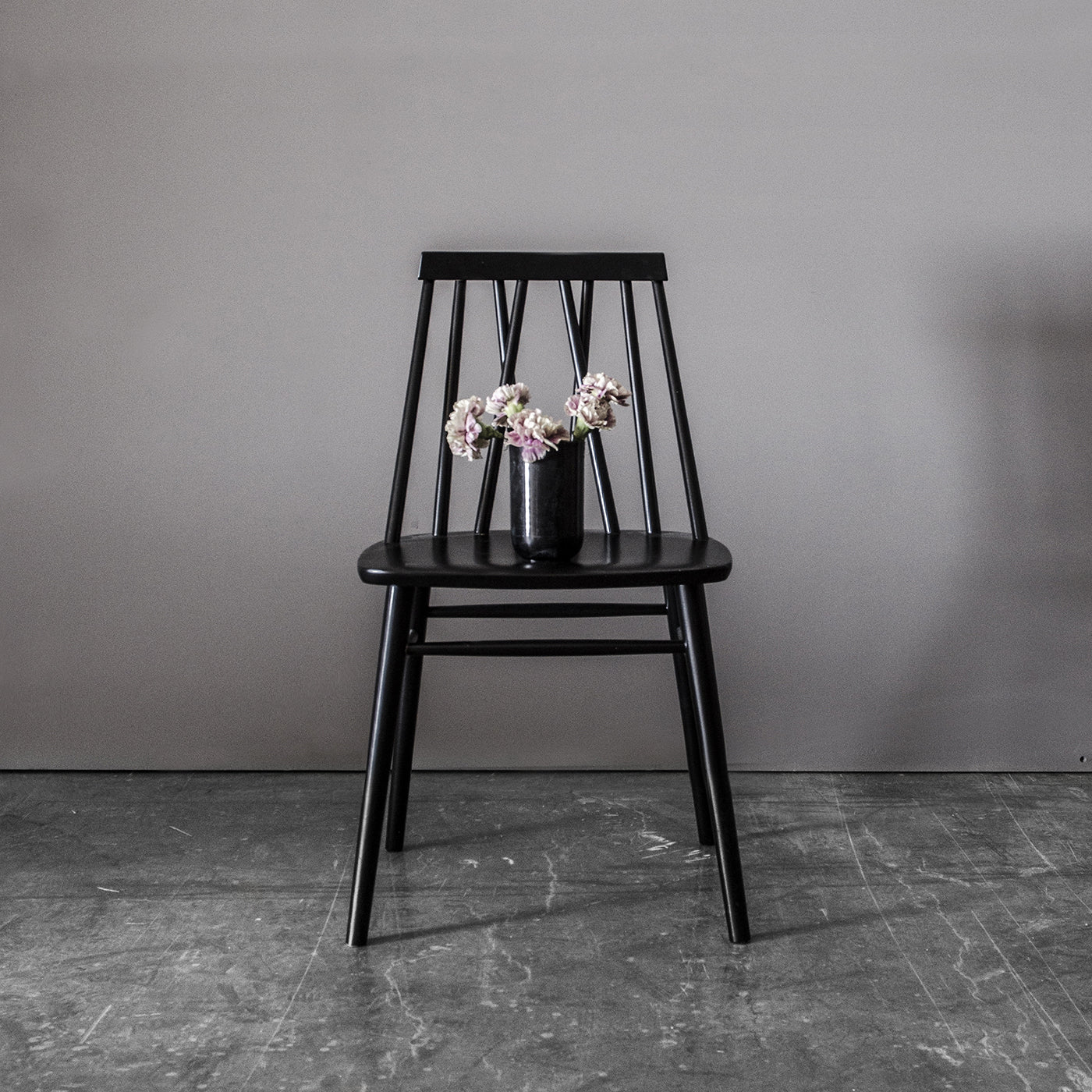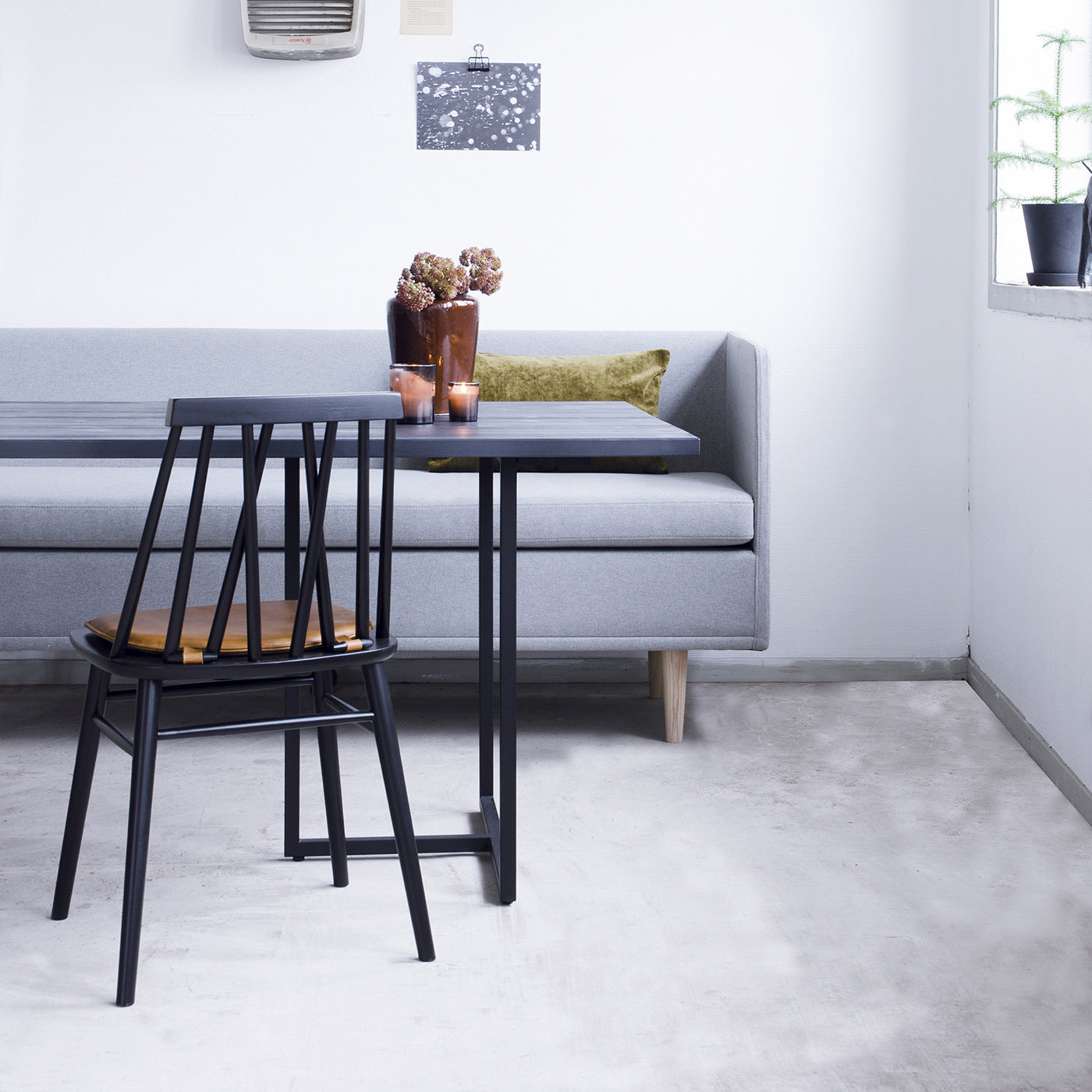 Non er en eldre benevnelse på et måltid. Navnet gjenspeiler det tradisjonelle håndverket og funksjonaliteten spsisestoler har hatt gjennom generasjoner, som en viktig del av måltidet. Med kryssede spiler inspirert av gresset i en eng har Non spisestol fått en leken, moderne vri. |