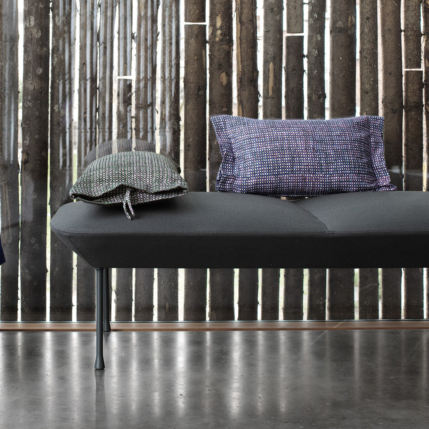Med raffinerte geometriske linjer og glatte former kombinerer Oslo familien norsk håndverk med tekstiler fra danske Kvadrat, noe som gjør det til et moderne tillegg til ethvert hjem eller profesjonelt rom |