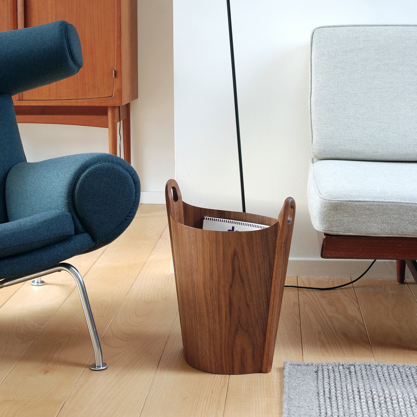 Oval kan benyttes som aviskurv i stuen eller en elegant papirkurv til kontoret. Produseres i oljet eik og valnøtt. |