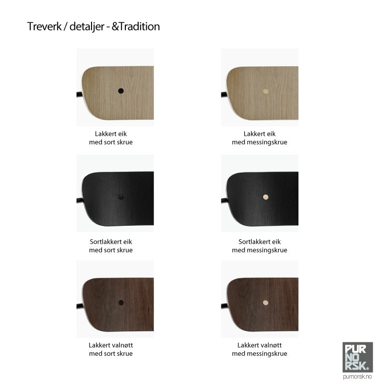 Pavilion kommer i 3 forskjellige utførelser Sortlakkert eik, Valnøtt og Lakkert eik |