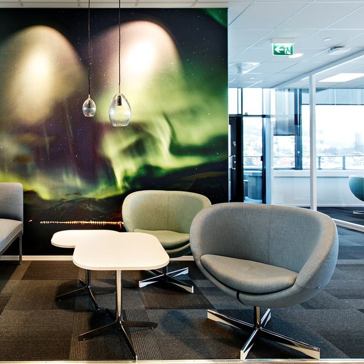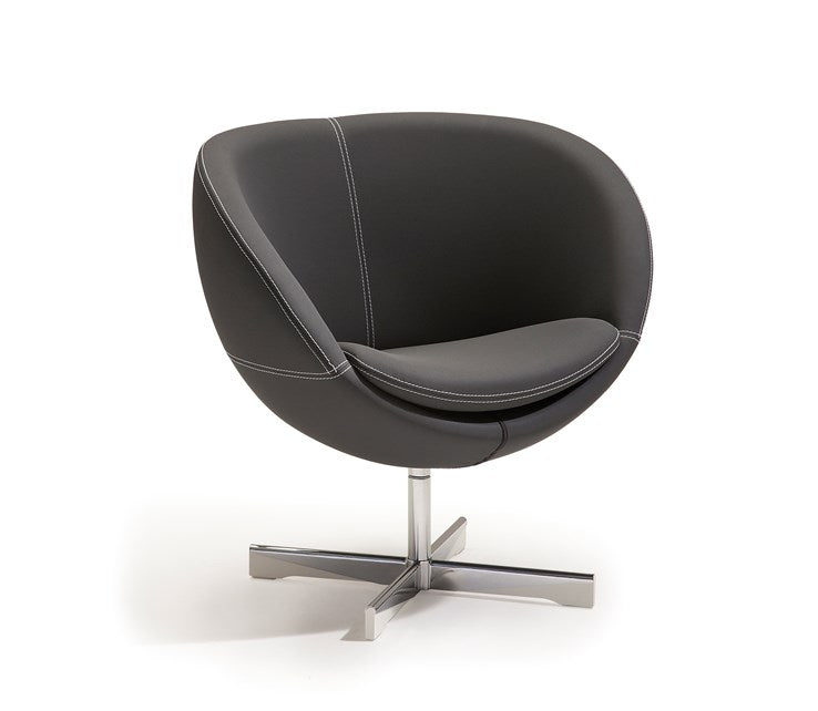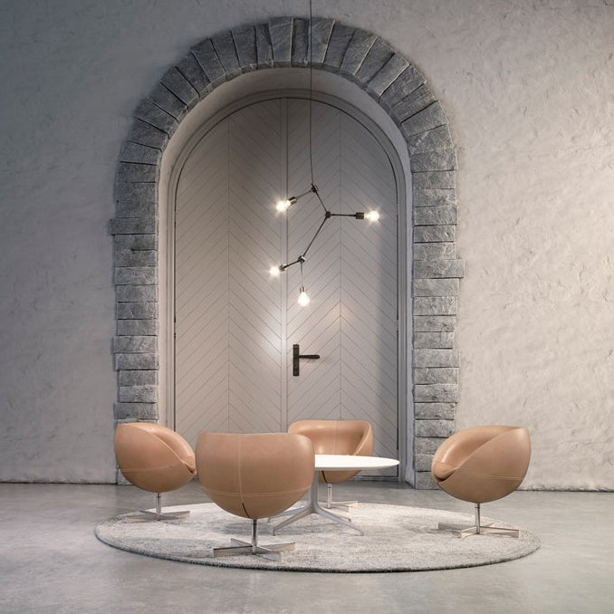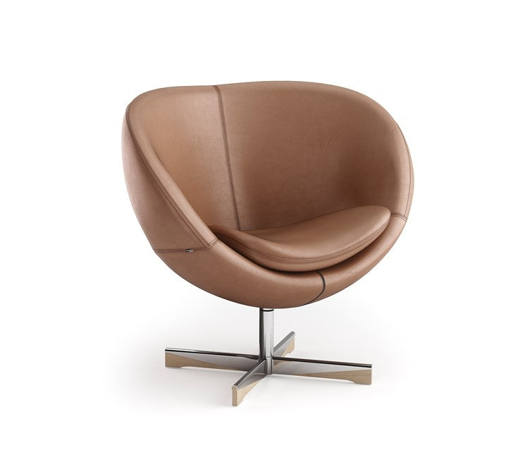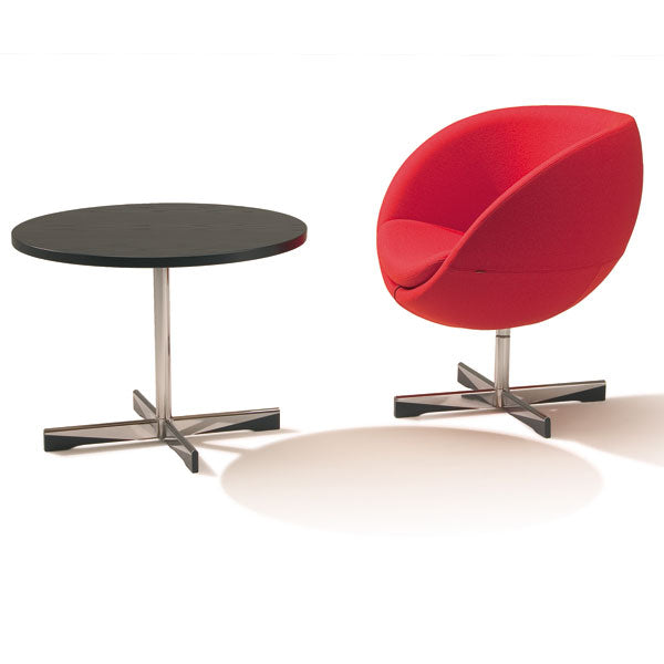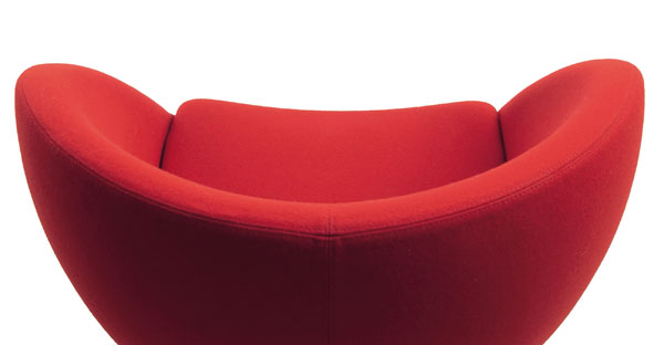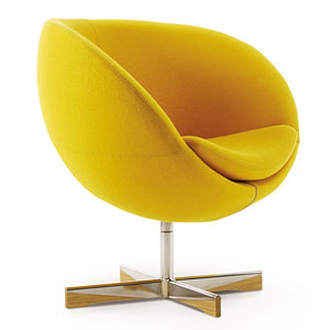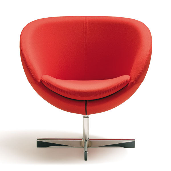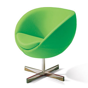 Stilren stol som var den første kuleformede stolen i norsk møbelhistorie. Leveres i flere farger i slitesterkt ullstoff eller i skinn.