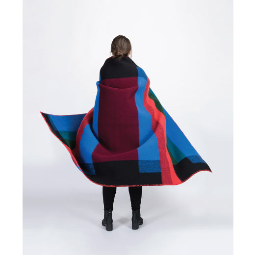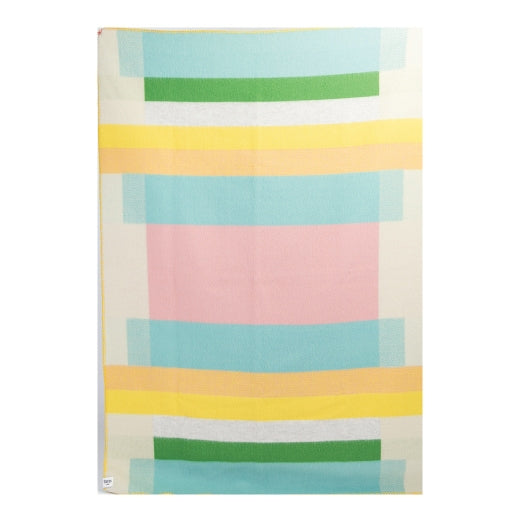 Mikkel pledd og puter kombinerer inspirasjon fra Bauhaus bevegelsen og norsk tradisjonell veving på den ene siden med en moderne og utforskende bruk av farger på den andre. Mikkel av Kristine Five Melvær vant prisen for beste tekstil på 2015 ICFF Editors Awards i New York