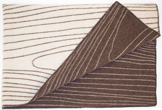 Skog er et nytt ullpledd designet av Anderssen & Voll produsert av Røros Tweed. Treverk har en helt spesiell plass i nordiske hjem. Når temperaturen synker, er det godt å omgi seg med den naturlige lune varmen som stråler ut fra treet. Designen «Skog» er en stor billedvev i en lun fargepalett. Inspirasjonen er hentet fra tresnitt og fra det naturlige rike linjespillet som ligger gjemt inne i skogen. |