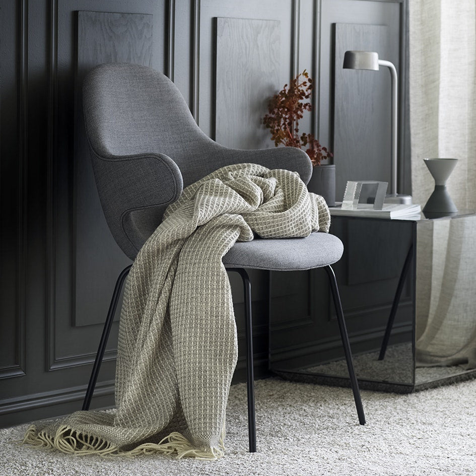 Størrelse:150x210 cmVega er et nytt lammeullspledd med et luftig volum som gjør det ekstra lunt og varmt. Pleddet er lett i vekt og med raffinerte detaljer. Du kan fint slå det om deg og bære det rundt i huset som et sjal.. Vega kommer i naturhvit, melert grå, mørk grå samt en dyp petroleumsgrønn tone