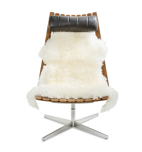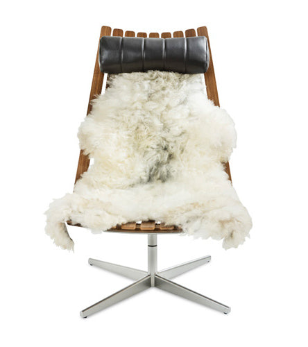 Produktbeskrivelse: Saueskinn fra norske frittgående villsau. Skinnet har hemper som holder skinnet på plass i stolen. Passer til stolene Scandia Nett & Scandia Senior