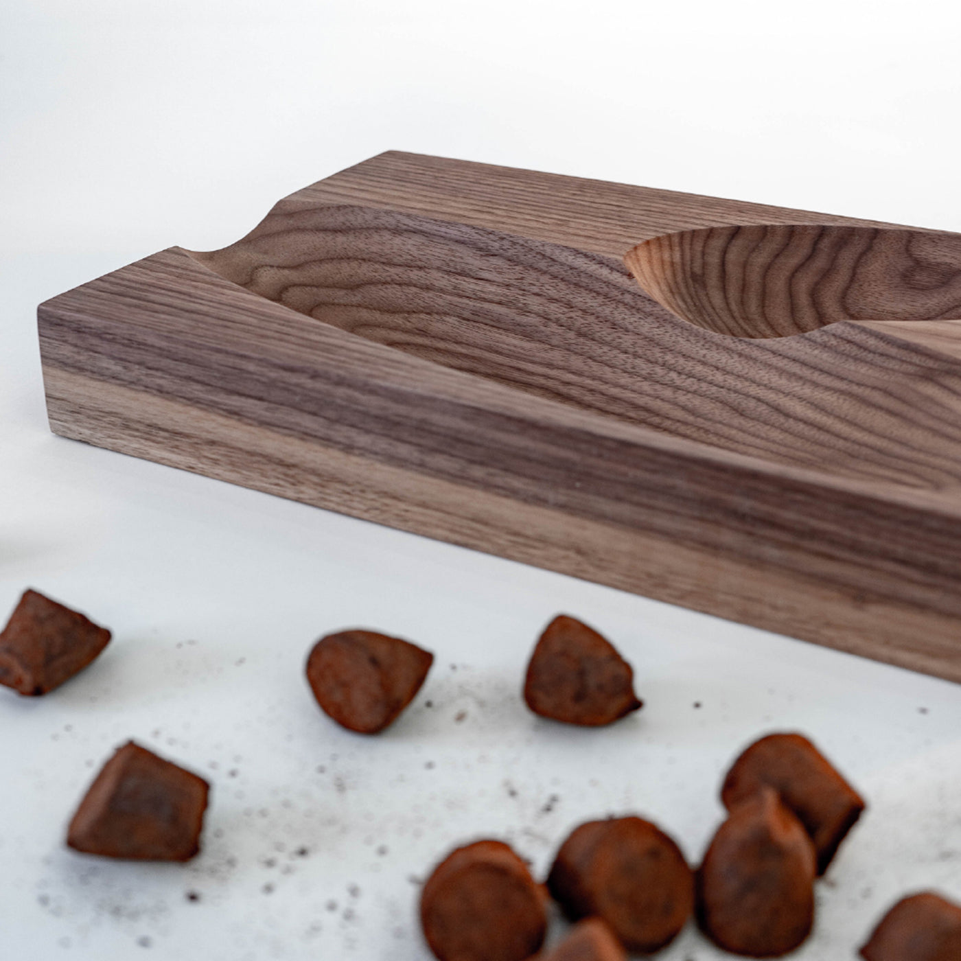 En familie av tre flerbruks boller som kan brukes til å samle eller å stille ut små objekter eller som en dekorasjon i seg selv. Håndskåret ut med tradisjonelle verktøy fra en rektangulær planke. Finnes i forskjellige materialer og overflatebehandlinger. |